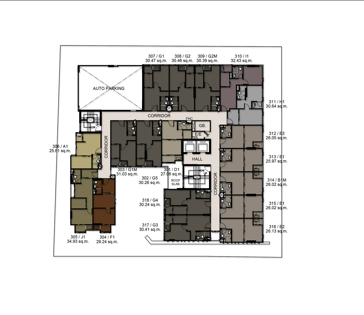 - Type G ขนาด 30.24-31.03 ตร.ม. จำนวน 4 ห้อง