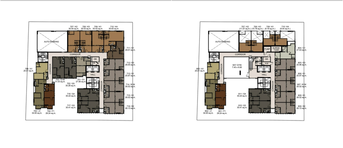 - Type K ขนาด 9.19-11.07 ตร.ม. จำนวน 4 ห้อง (เป็นส่วนชั้นลอยของห้อง Loft Type K บริเวณชั้น 7)