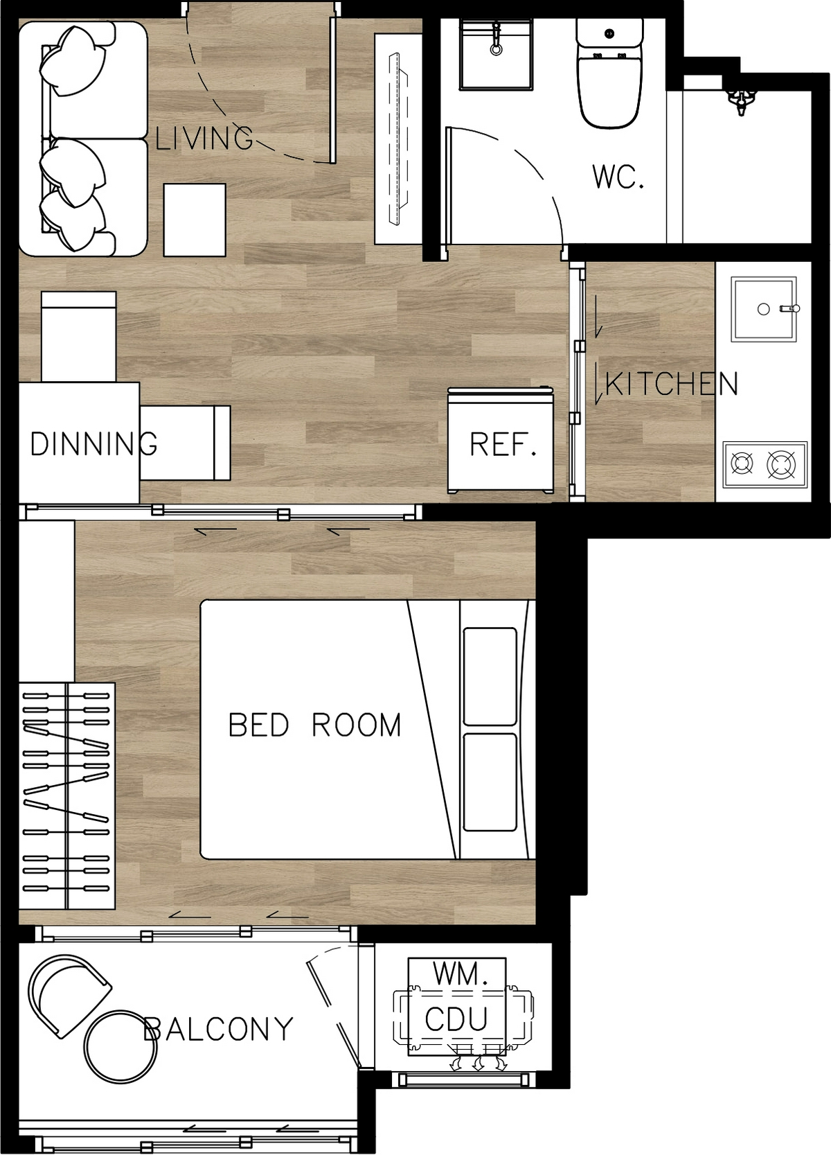 - 1 Bed-L 30.43-35.63 ตร.ม.