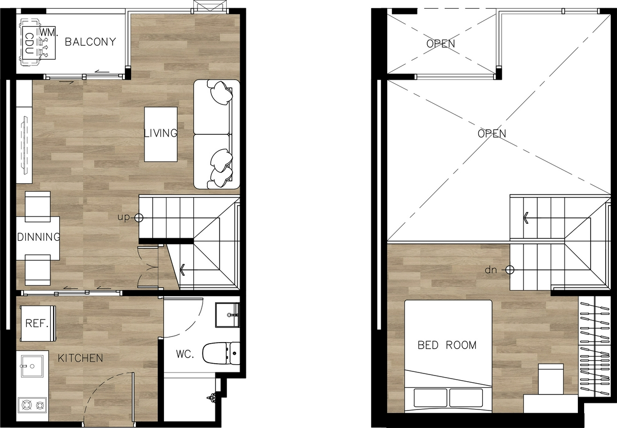 - Type K ขนาด 30.43-35.63 ตร.ม. จำนวน 4 ห้อง (1 Bedroom Loft)