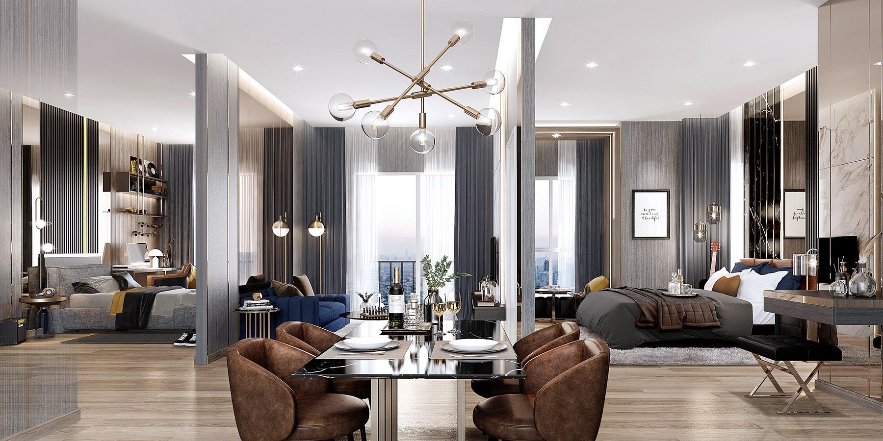 ห้องพักอาศัยของโครงการนี้ มีห้องตั้งแต่ Studio - 2 ห้องนอน ขนาด 28 – 67 ตร.ม.