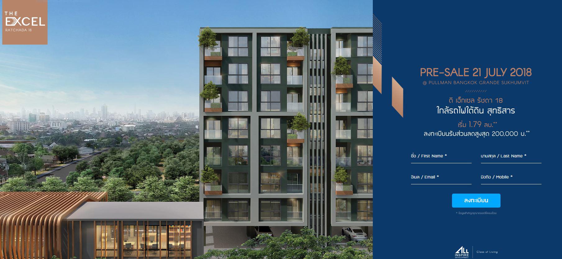 ดิ เอ็กเซล รัชดา 18 (The Excel Ratchada 18) คอนโดใหม่จาก All Inspire ใกล้ MRT สุทธิสาร ราคาเริ่ม 1.79 ล้านบาท