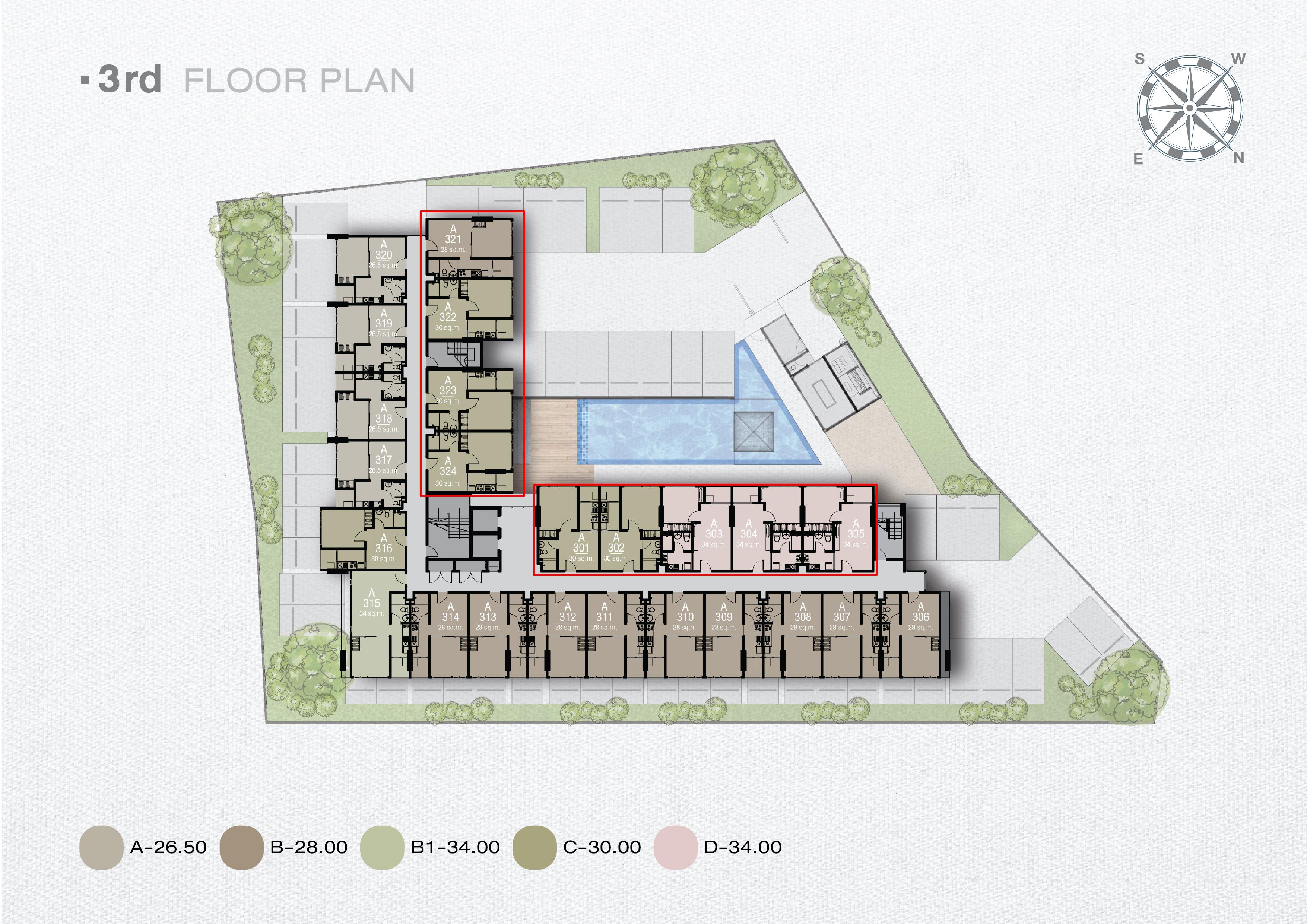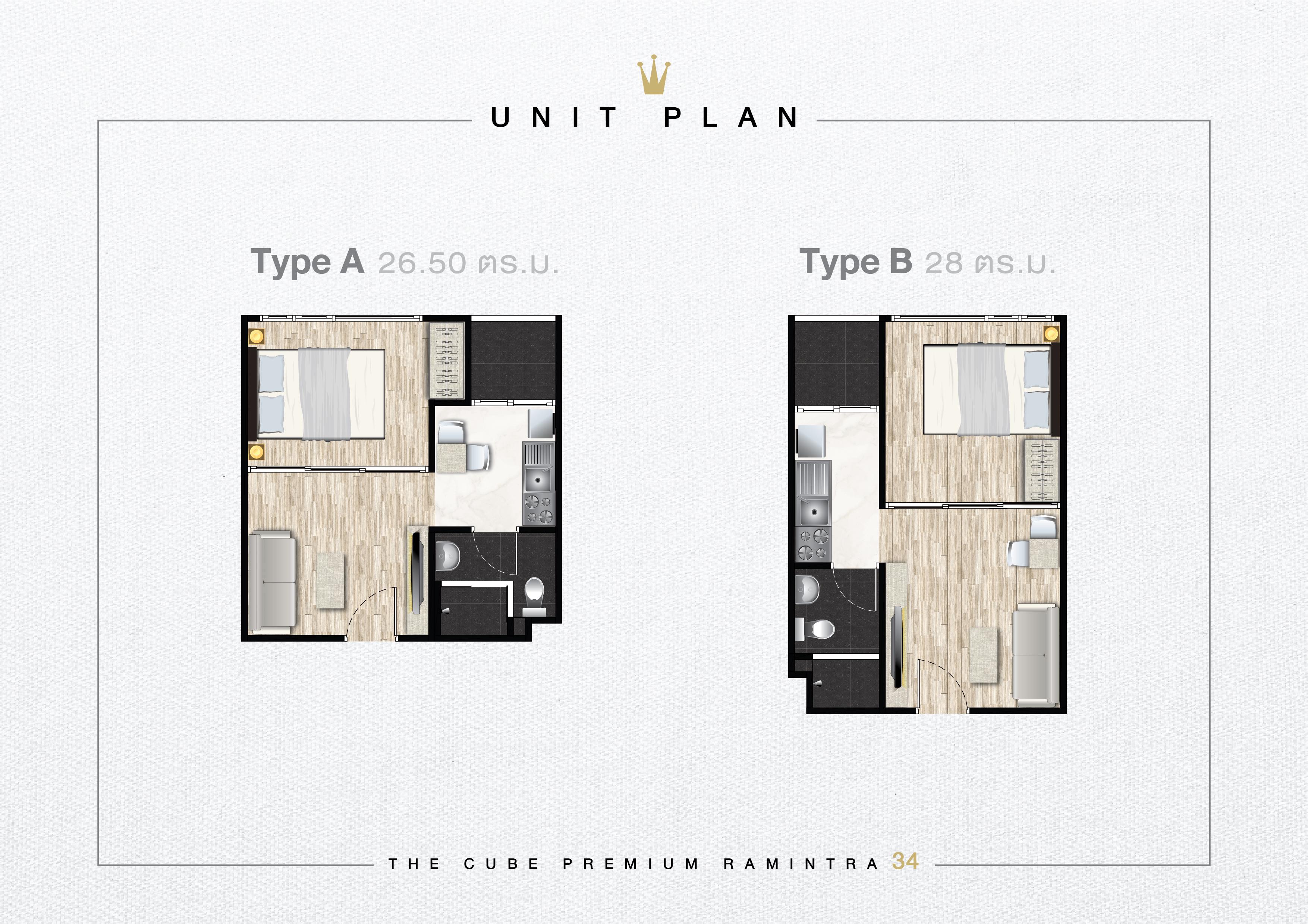 - ห้อง Type A ขนาด 26.5 ตารางเมตร จำนวน 28 ยูนิต