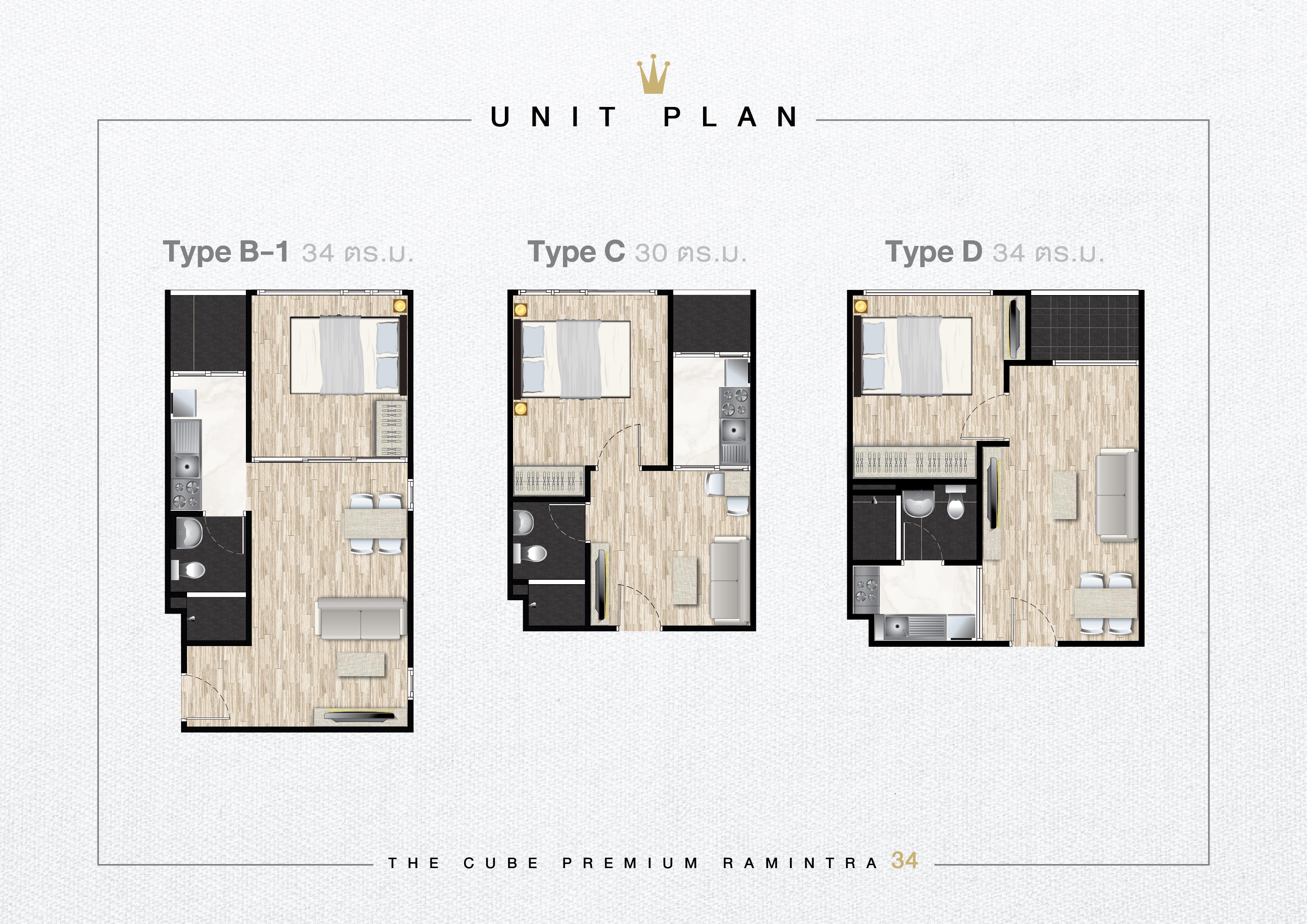 - ห้อง Type B-1 ขนาด 34 ตารางเมตร จำนวน 7 ยูนิต