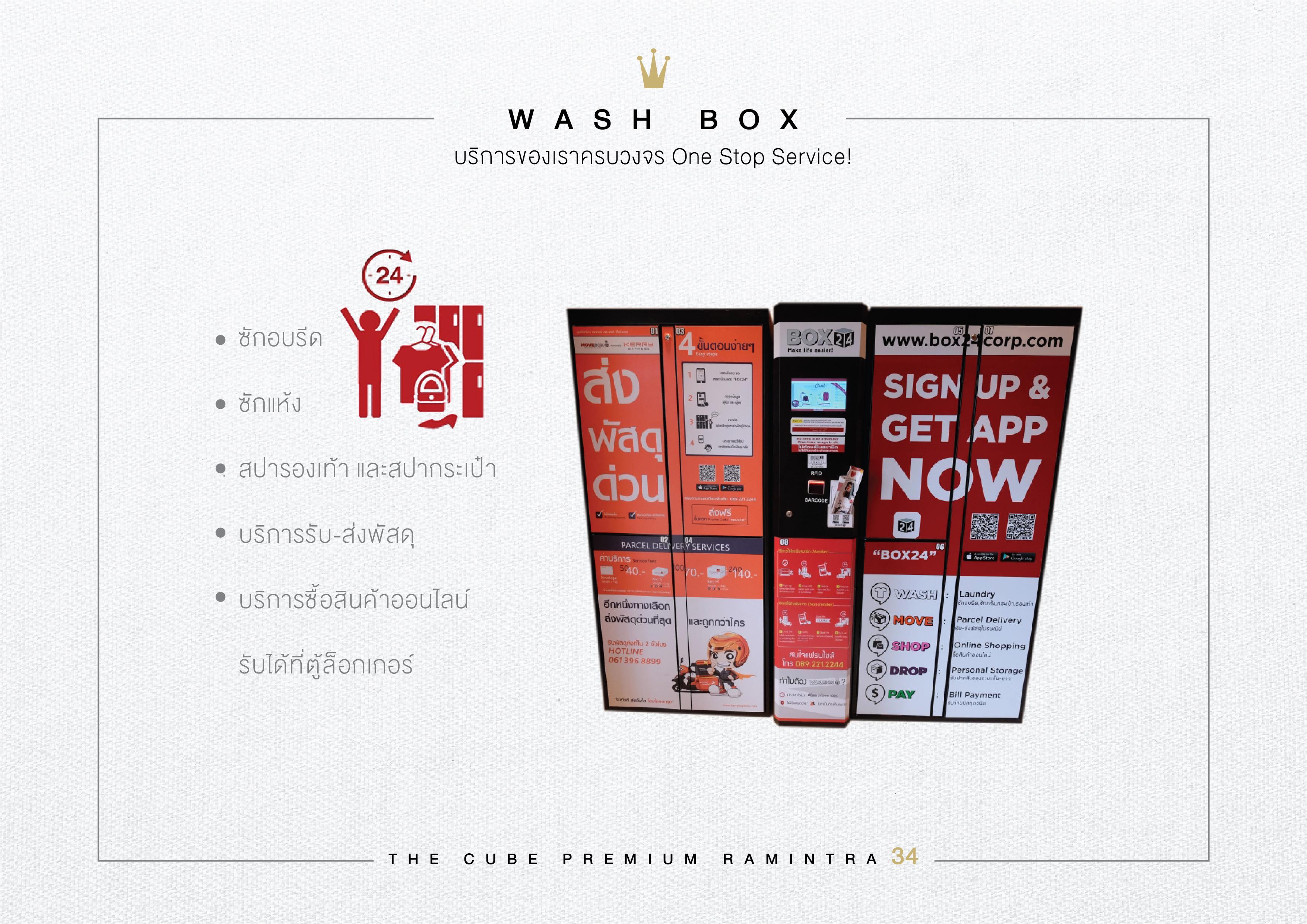 ตอบรับชีวิตทันสมัยแบบครบวงจรด้วย Wash Box ให้ผู้พักอาศัยหมดกังวลเรื่องปัญหาซักล้าง , บริการรับส่งพัสดุอัจฉริยะ และการซื้อสินค้าออนไลน์ ที่สามารถใช้งานผ่านทางแอพลิเคชั่นบนมือถือ ตลอด 24 ชั่วโมง