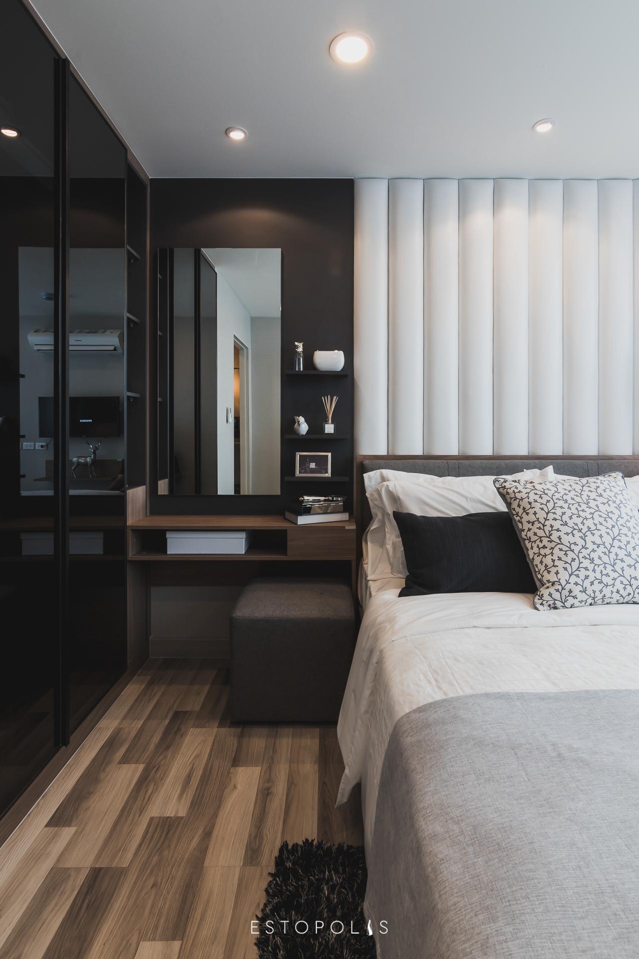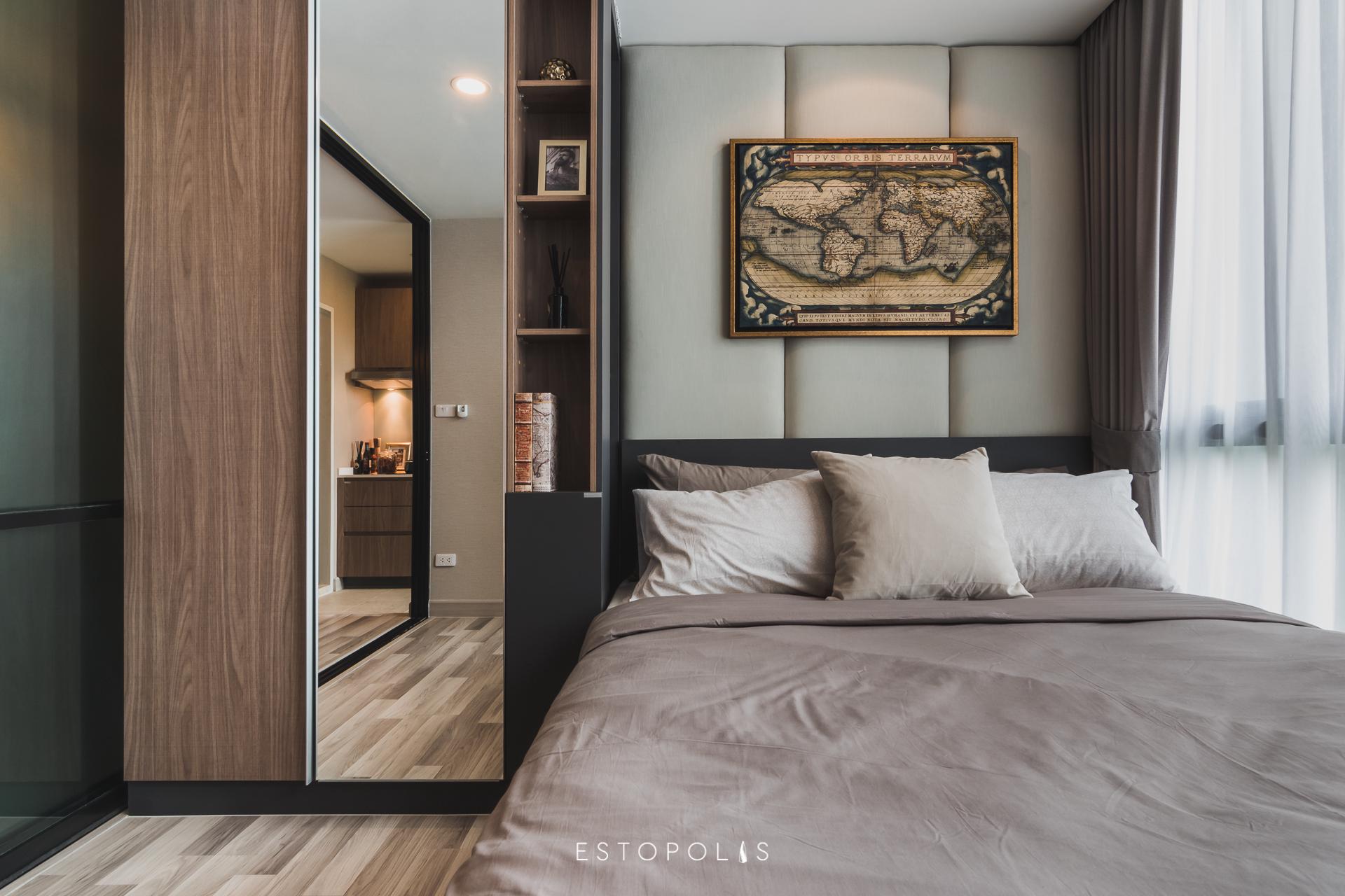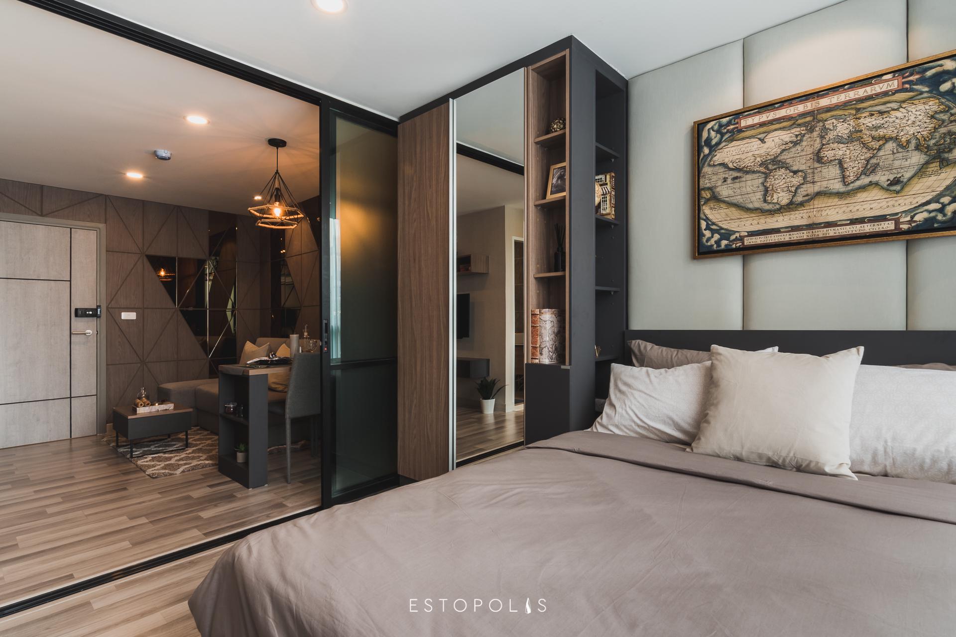 ในส่วนของห้องนอน ทาง เดอะคิวบ์ พรีเมียม รามอินทรา 34 ก็จะตกแต่งด้วยเฟอร์นิเจอร์บิลท์อิน (Built in) เช่นเดียวกัน จึงทำให้ห้องดูโล่งสบายตา ประหยัดพื้นที่ใช้สอย