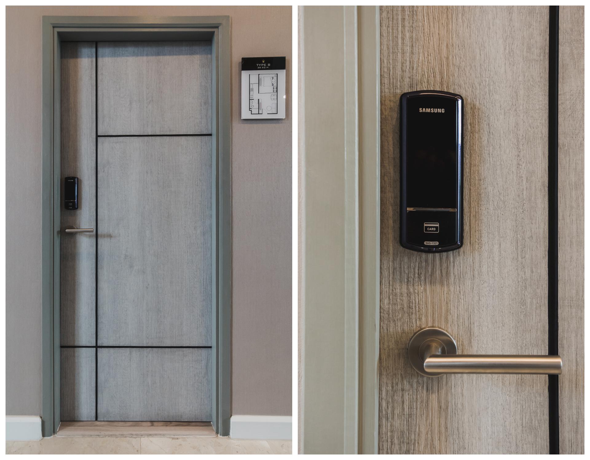 บานประตูไม้ HDF ปิดผิวด้วยแผ่นลามิเนต พร้อมติดตั้งระบบ Digital Door Lock ของ Sumsung