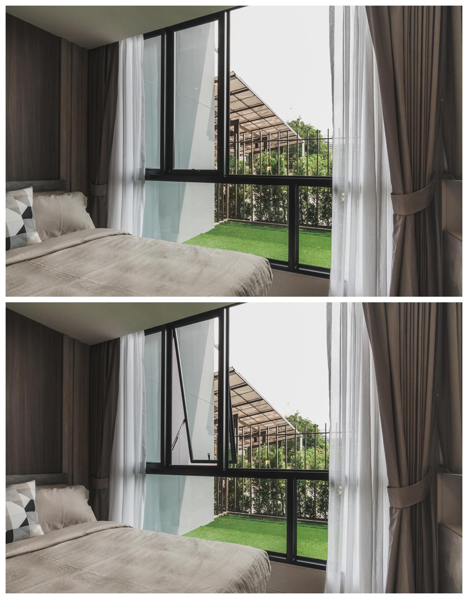 แนะนำให้ใช้ผ้าม่านทั้งแบบโปร่งและทึบคู่กัน เผื่อวันไหนอากาศดีแดดไม่แรง ก็อาจเลือกใช้แค่ม่านโปร่งแล้วเปิดหน้าต่างรับลมก็นับว่าสะดวกไม่น้อย