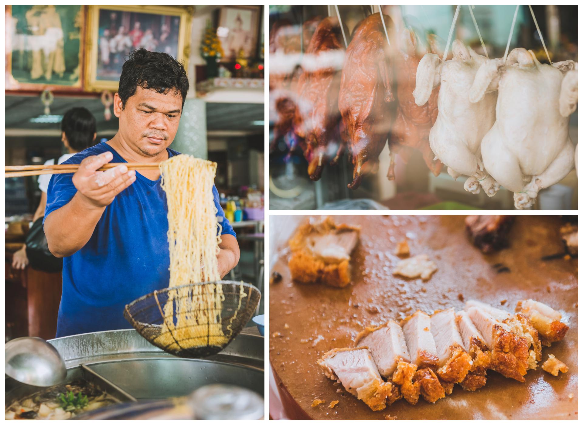 เริ่มที่ ร้านบะหมี่เกี๊ยวกลางซอย มาที่เดียวก็เลือกทานได้ทั้ง บะหมี่เกี๊ยวหมูแดง ข้าวมันไก่ตอน ก๋วยเตี๋ยวเป็ด ข้าวหน้าเป็ด ออส่วน หอยทอดกระทะร้อน ข้างกันเป็นร้านข้าวหมูแดง ข้าวหมูกรอบ