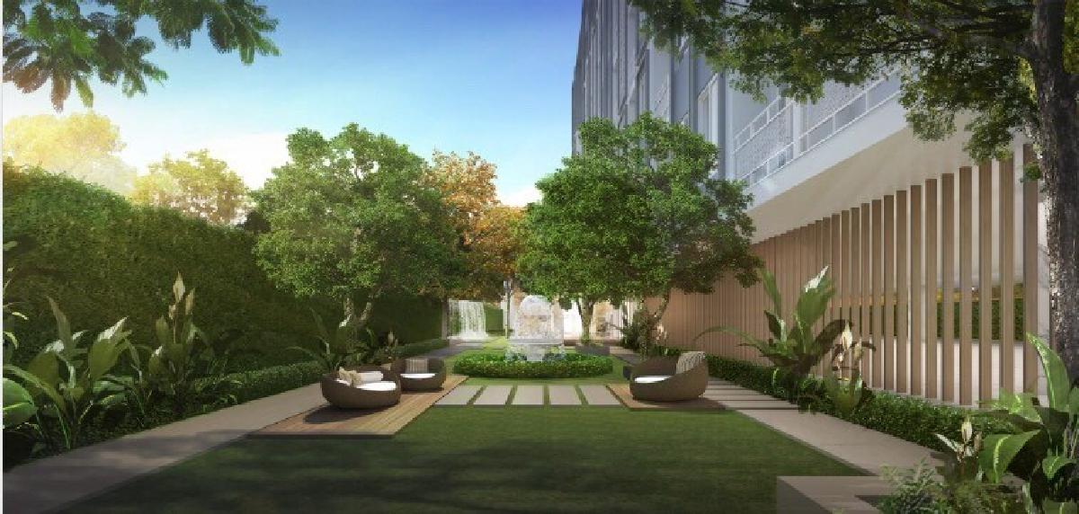 ภาพบรรยากาศจำลองของพื้นที่สีเขียวรอบโครงการ The Elegant ลาดพร้าว 1 บริเวณชั้น 1