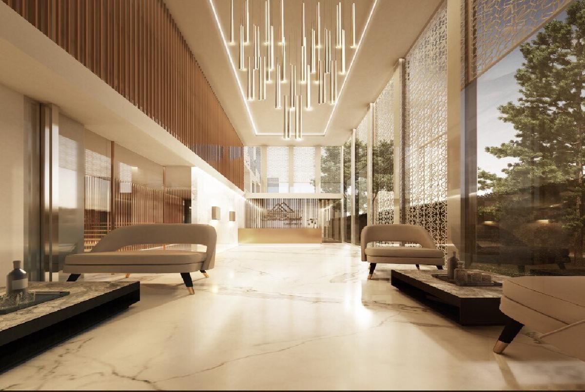 ภาพบรรยากาศจำลองของ Main Lobby ออกแบบมาให้มีฝ้าเพดานสูงโปร่งแบบ Double ceiling ดู Luxury สมกับคอนเซ็ปต์ของโครงการ