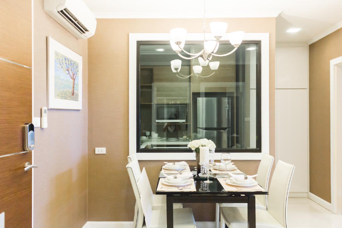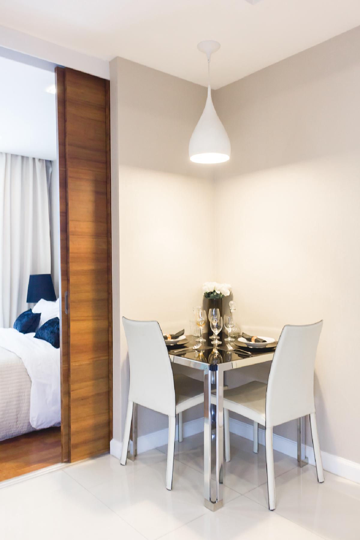 หากจะตั้งโต๊ะทานข้าวอย่างในภาพ อาจขยับโต๊ะออกมาหรือเพิ่มขนาดโต๊ะเพื่อให้นั่งทานได้สะดวกขึ้น
