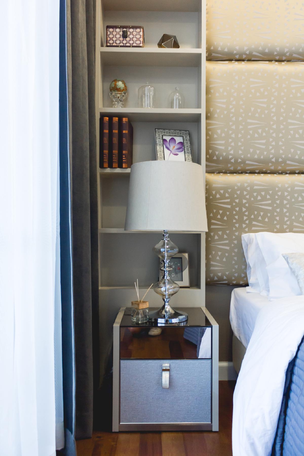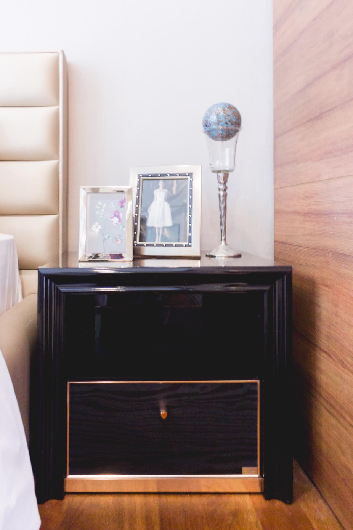 โต๊ะข้างเตียงขนาดไม่ใหญ่มาก ใช้วางโคมไฟหรือของใช้ใกล้มือ