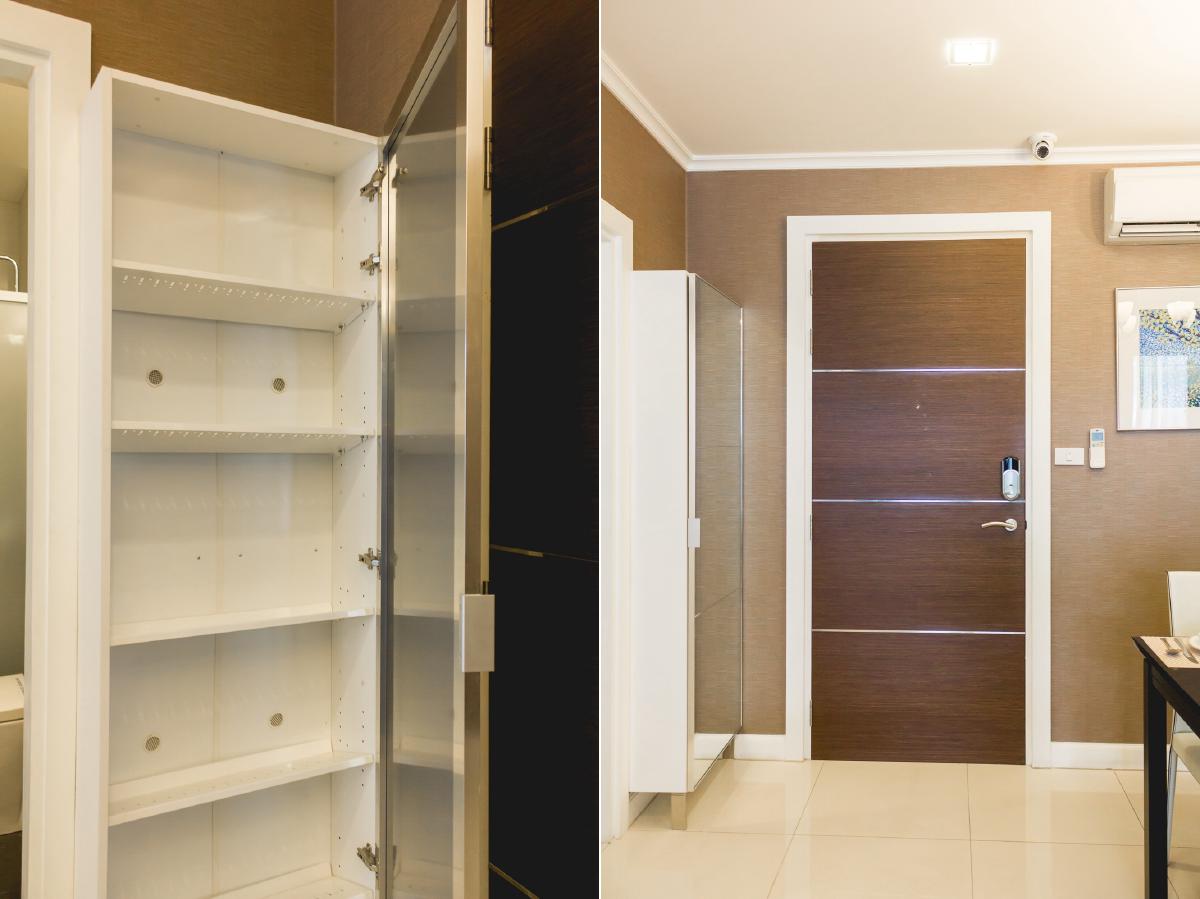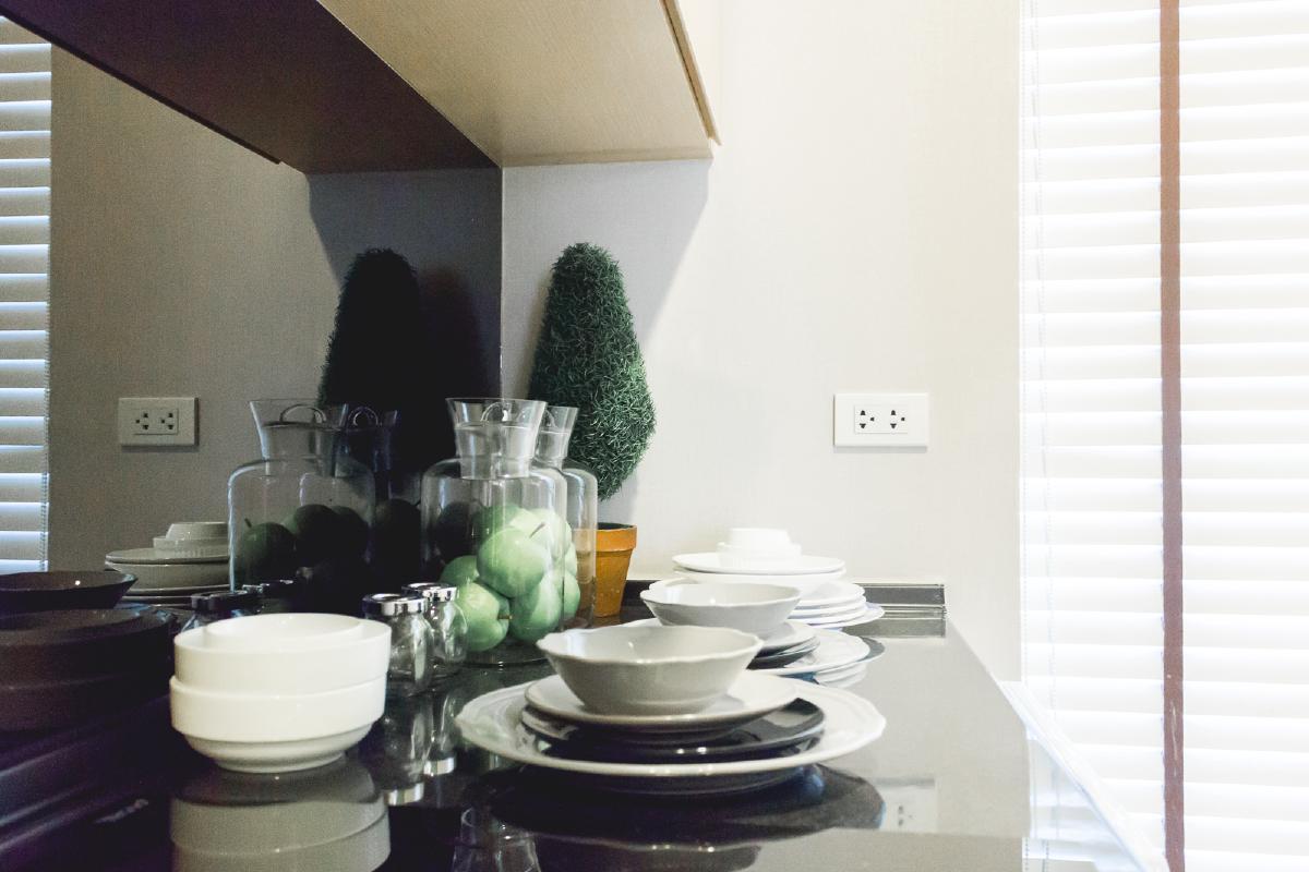 ห้องครัวแบบปิดของทางโครงการ เดอะ เมโทรโพลิส สำโรง อินเตอร์เชนจ์ จะติดตั้งชุดครัวพร้อมเตาไฟฟ้าและเครื่องดูดควัน มีการกั้นพื้นที่ด้วยประตูบานเลื่อน ช่วยป้องกันกลิ่นและควันรบกวนไปยังส่วนอื่นๆ ของห้อง สำหรับเคาน์เตอร์ครัวจะทำเป็นที่ให้ใช้เก็บของ เก็บอุปกรณ์ได้ค่อนข้างเยอะ มีช่องใส่ไมโครเวฟ , เครื่องซักผ้า และตู้เย็น เรียบร้อย