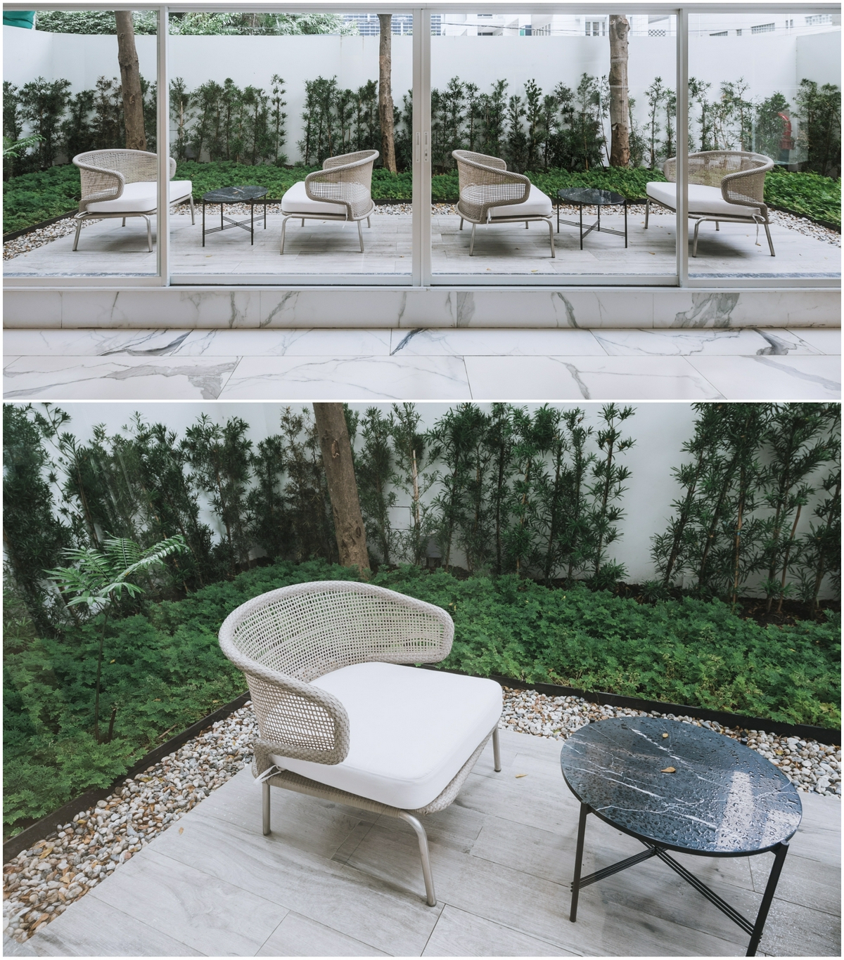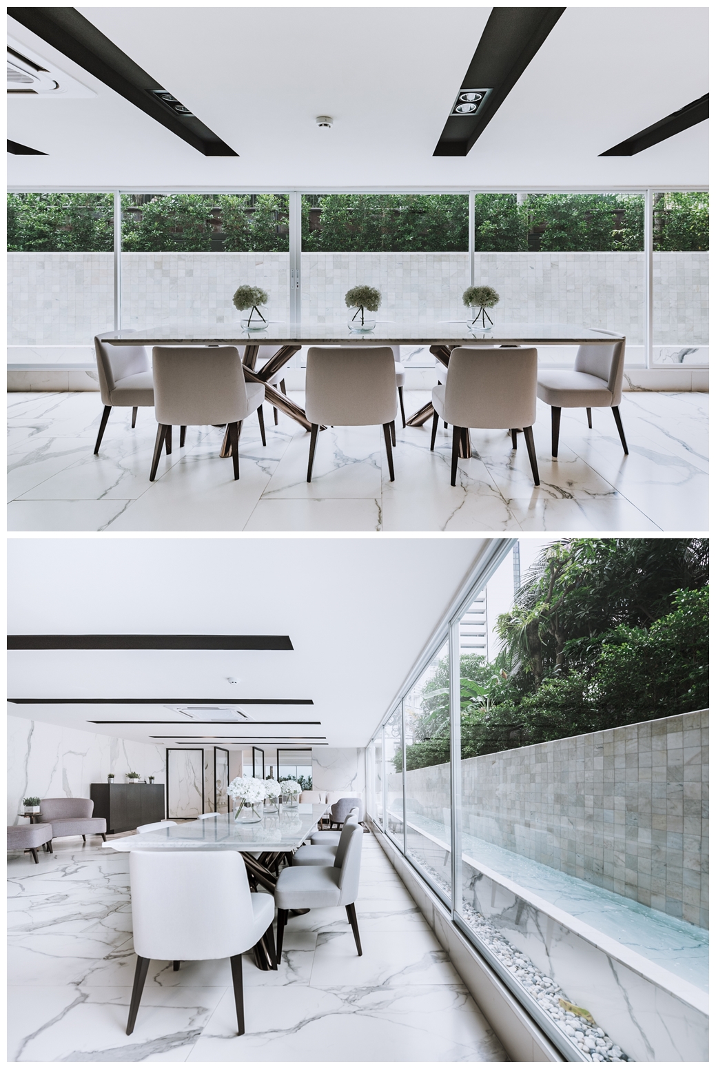 อีกทั้งบริเวณด้านข้างล็อบบี้ยังมีมุมนั่งประชุม คุยงาน ซึ่งทางโครงการได้ออกแบบไว้อย่างดีด้วยการติดกระจกใสแบบเต็มบาน ยาวตลอดแนวที่นั่ง ทำให้แสงธรรมชาติส่องเข้ามาได้เต็มที่ นอกจากนี้ยังมีเสียงน้ำไหลช่วยผ่อนคลายความเครียด และสร้างบรรยากาศร่มรื่นให้แก่การพักผ่อนในทุก ๆ วัน