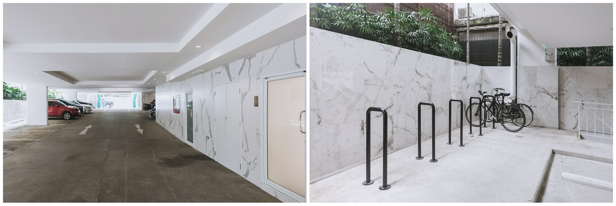 ส่วนอีกจุดจะเป็นลานจอดรถชั้นใต้ดิน ที่มีทางลงอยู่ด้านใน พร้อมทางเข้าโถงลิฟต์โดยสารที่ต้องใช้คีย์การ์ดในการเข้าออก เพื่อความปลอดภัยและสะดวกสบาย หากรวมที่จอดรถทั้งหมดแล้วก็จะรองรับได้ถึง 100% เลยทีเดียว