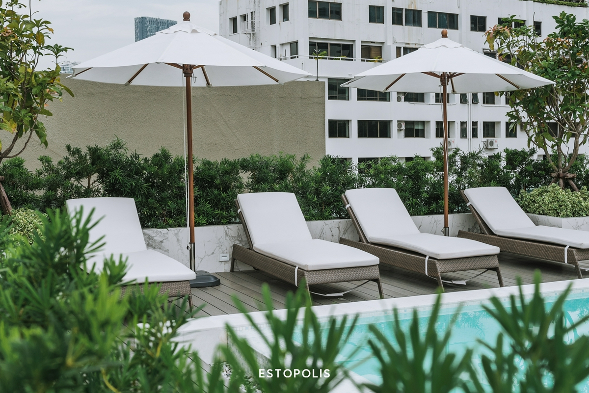 บริเวณปลายสระจะมีที่นั่ง Pool Seat ให้พักเหนื่อย หากใครจะใช้นอนรับลม หรืออาบแดดก็ผ่อนคลายได้ไม่แพ้กัน ยิ่งได้เครื่องดื่มเย็นชื่นใจมาจิบอีกสักแก้ว ยิ่งมีความสุข