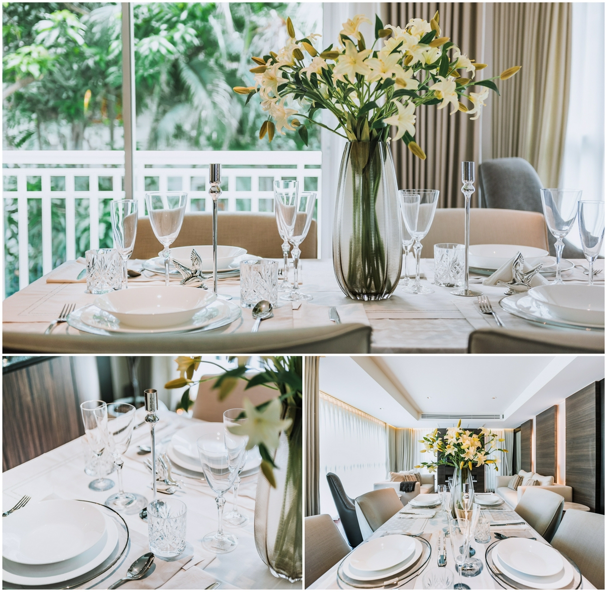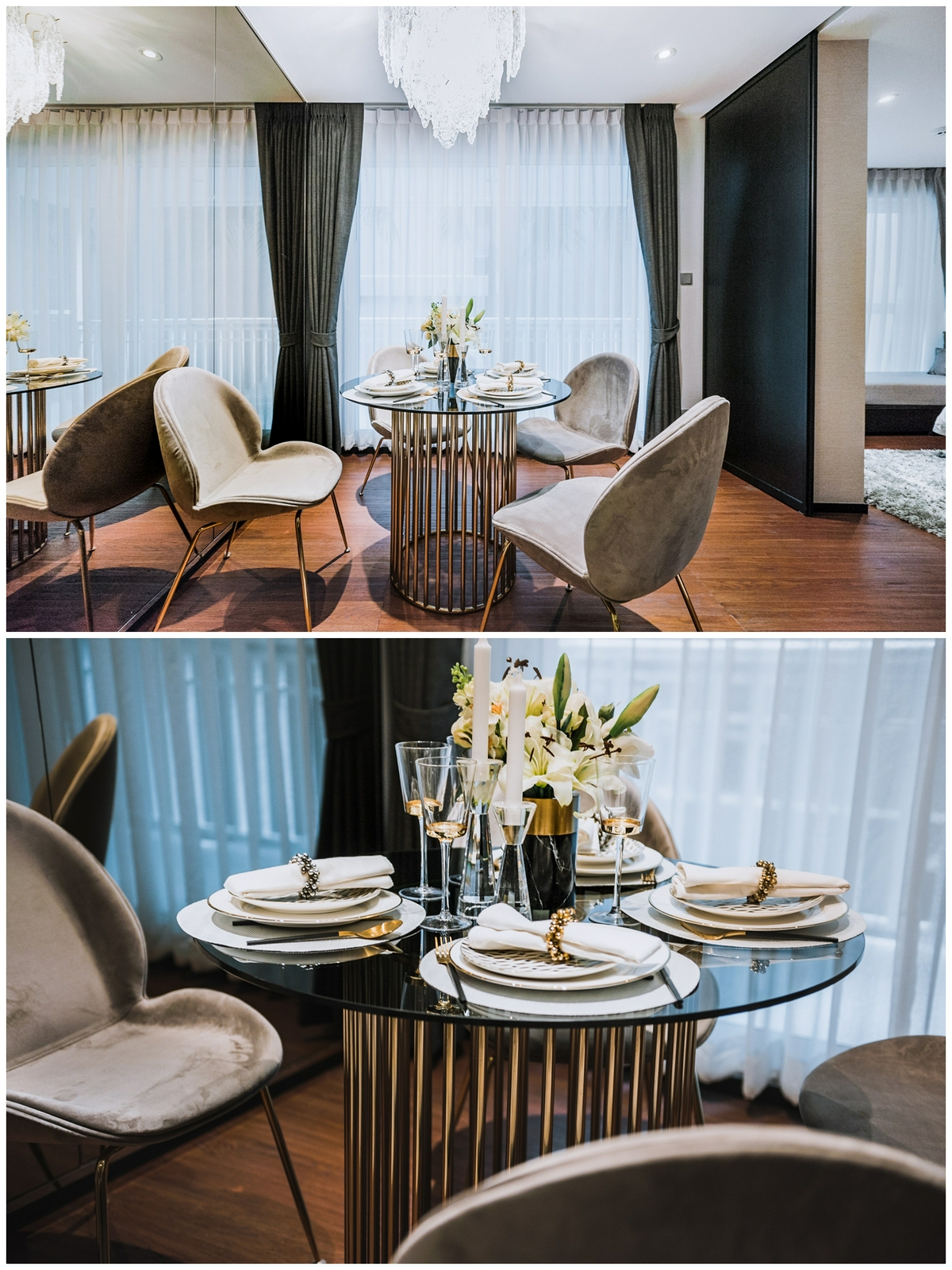 ย้ายไปทางด้านหลังจะเป็นมุม Dinning ที่ทางโครงการ The Private Residence Rajdamri จะวางโต๊ะอาหารตกแต่งไว้ให้ดูเป็นตัวอย่าง เหมาะสำหรับครอบครัวอบอุ่น เพื่อให้ทุกคนกลับมาทานอาหารพร้อมหน้าพร้อมตากันอย่างมีความสุข
