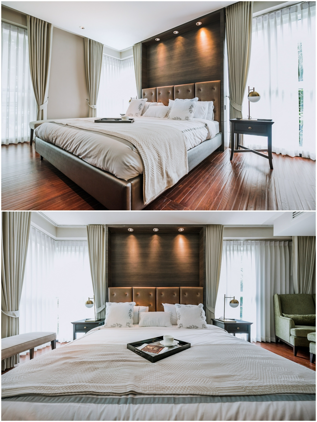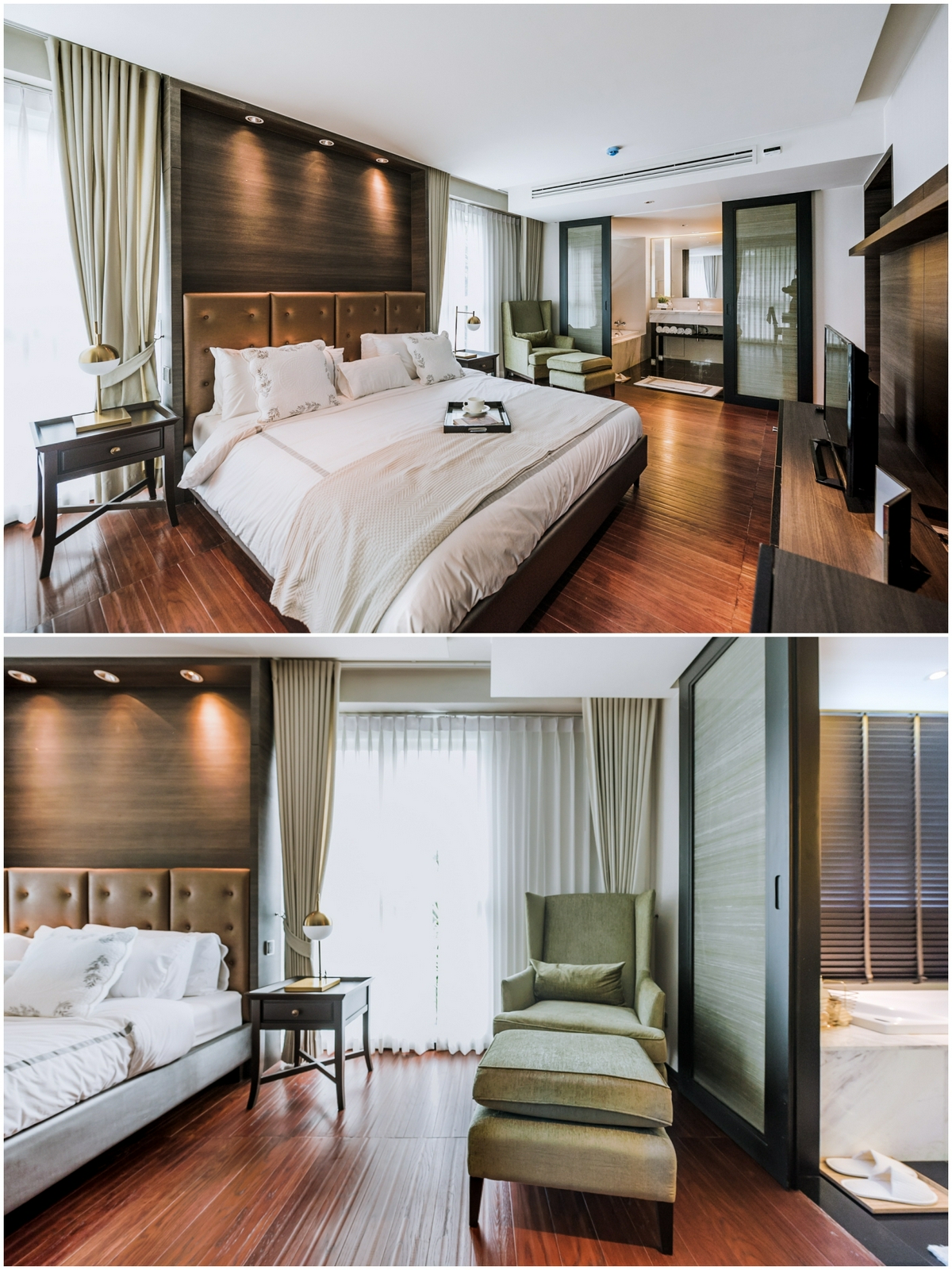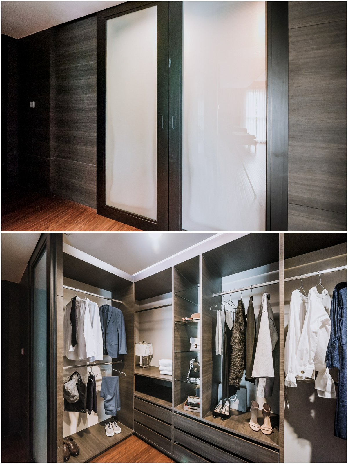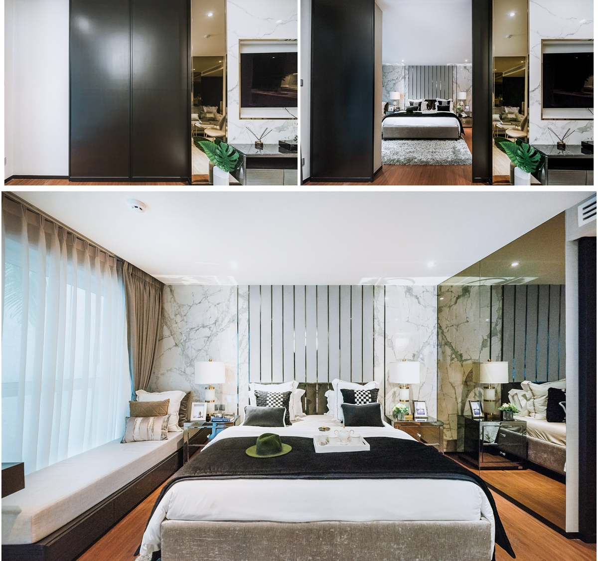 ซึ่งไม่ใช่พื้นที่ห้องนอนเท่านั้นที่น่าสนใจ แต่บรรยากาศภายในยังดูอบอุ่น สงบ ด้วยแสงไฟ warm light ที่เหมาะแก่การพักผ่อน พร้อมมีฟังก์ชัน Walk-in closet ซ่อนอยู่ด้านใน ให้ความสะดวกสบายในการใช้ชีวิตแต่ละวัน