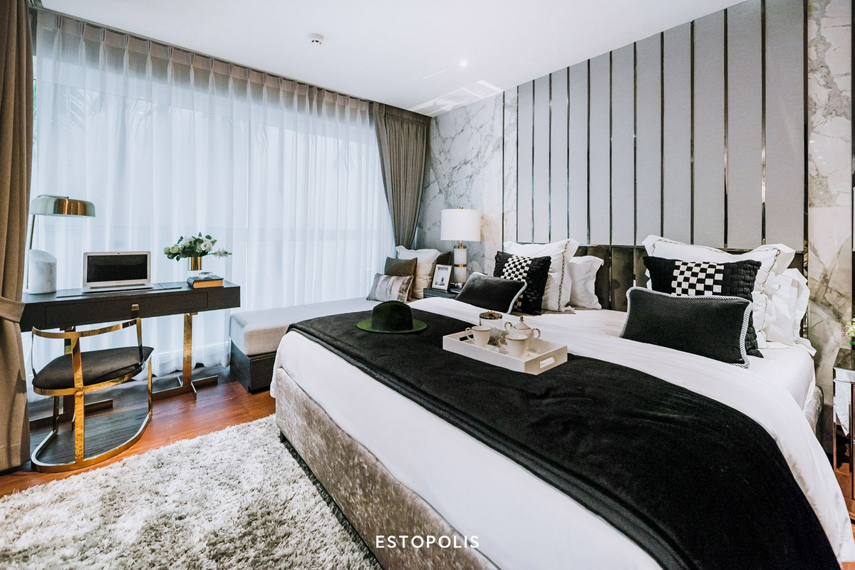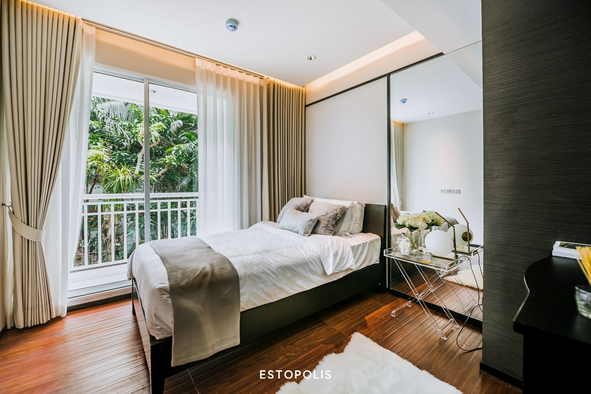 แม้ทางโครงการจะวางเตียงขนาด 5 ฟุตไว้กลางห้อง ก็ยังเหลือพื้นที่ด้านข้างให้บิลท์อินตู้เสื้อผ้า, ตู้เก็บของได้อย่างไม่อึดอัด หรือใครจะขยับเคลื่อนย้ายเฟอร์นิเจอร์เองก็ได้เช่นกัน โดยส่วนริมสุดของห้องจะมีระเบียงยื่นออกไป ช่วยให้ความสว่าง โปร่งโล่งเหมาะแก่การอยู่อาศัย
