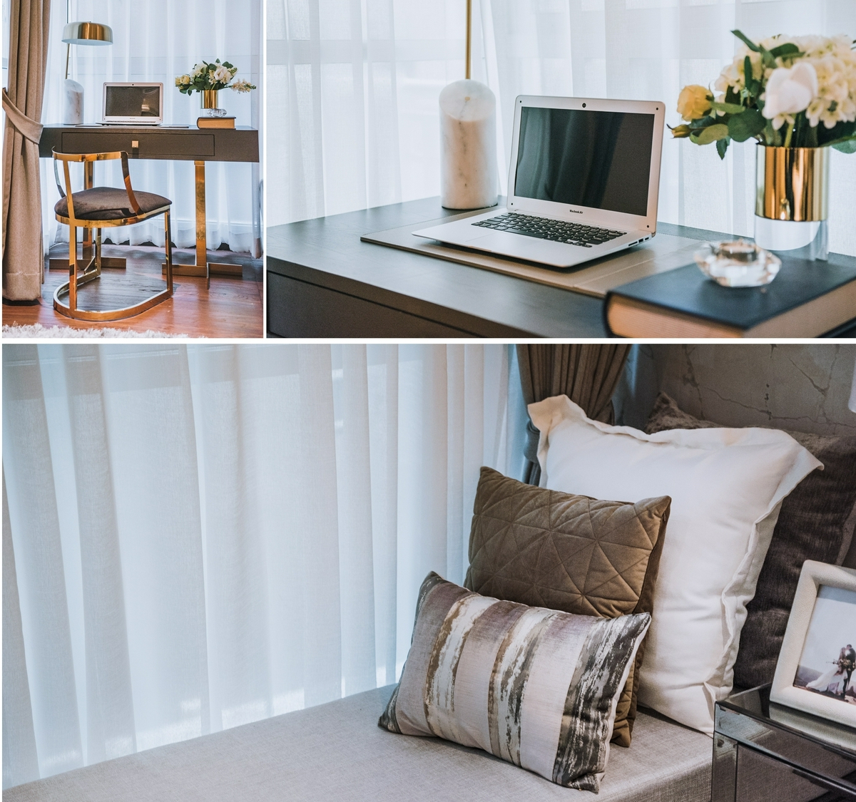 หากวันไหนอากาศดีก็อย่าลืมเปิดม่าน เลื่อนหน้าต่างออกไปรับลมระบายอากาศกัน เหมาะจะวางชุดโซฟาตัวใหญ่สไตล์ Daybed ให้เราใช้นอนดูหนังอย่างมีความสุข หรือจะตั้งโต๊ะทำงานตัวยาวก็เข้าที มีวิวระเบียงให้มองเพลิน ๆ ด้วย
