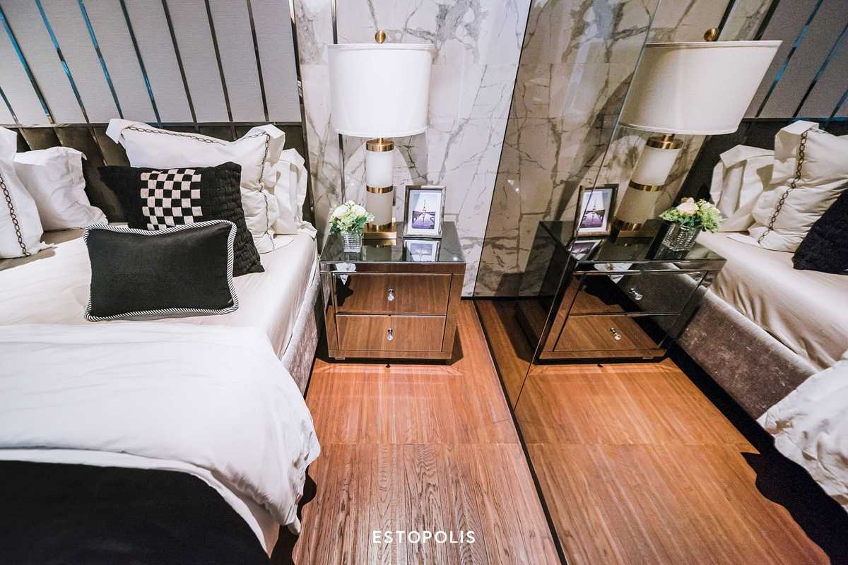 - ระยะฝ้าเพดานสูง 2.5 เมตร พื้นปู Engineering wood เทียบเท่าไม้จริง ที่ให้ทั้งความสวยงามและคงทน ส่วนผนังฉาบเรียบทาสีขาว ส่วนใครที่อยากเพิ่มความหรูหรา ก็สามารถตกแต่งด้วยกระจกติดผนัง หรือรูปภาพศิลปะได้ตามต้องการ