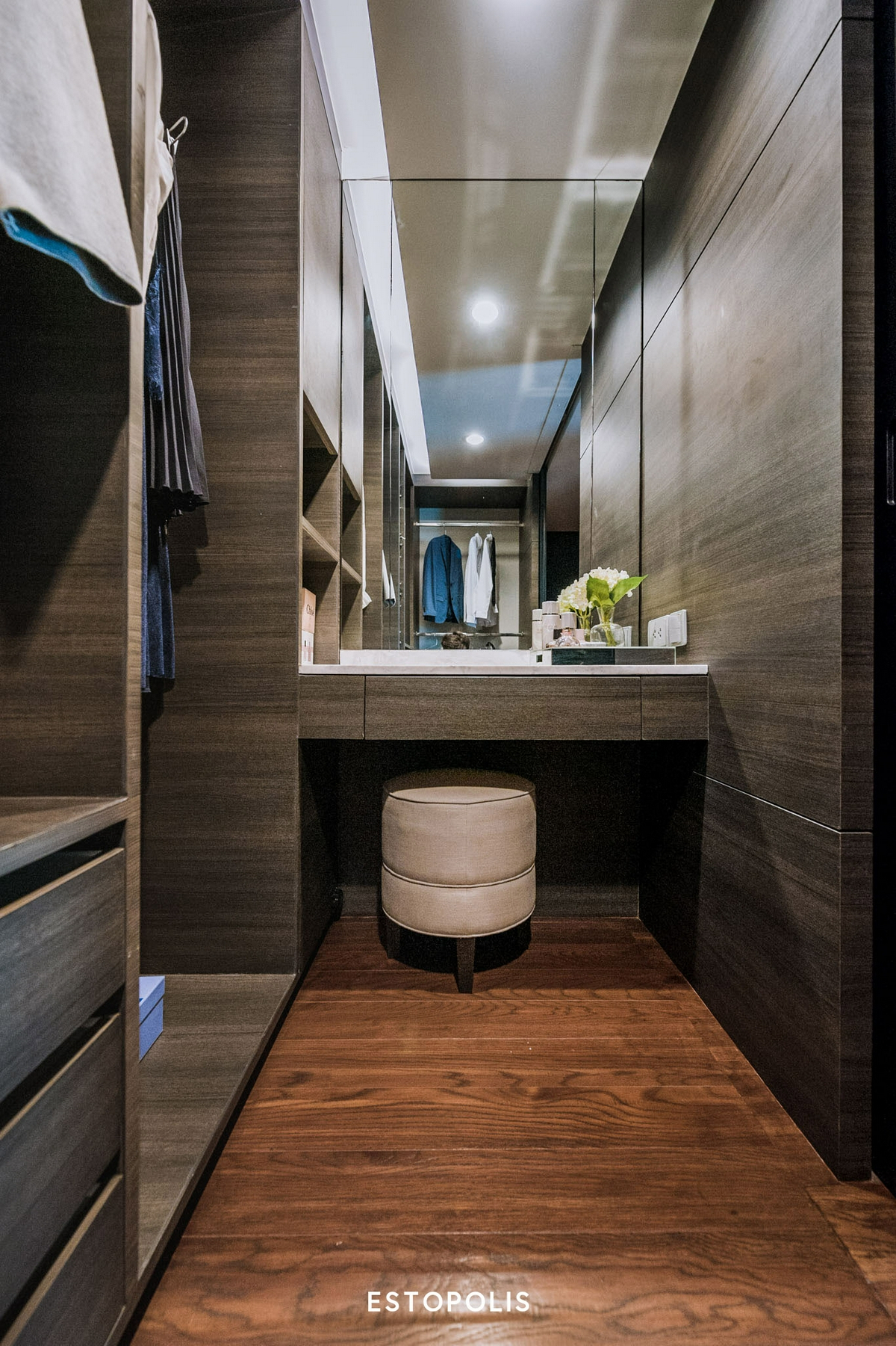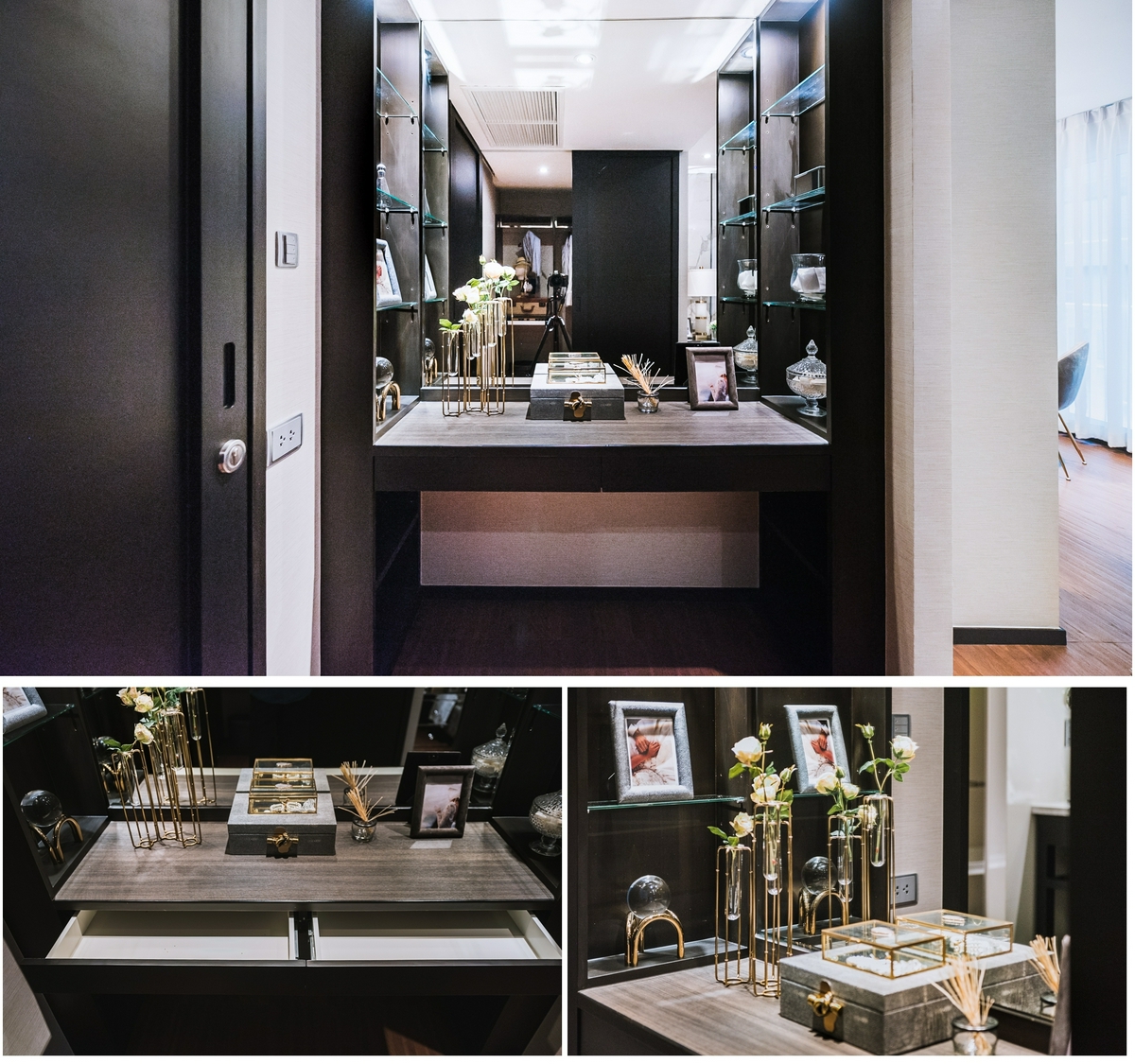 ปิดท้ายด้วยโต๊ะเครื่องแป้งบิลท์อินที่อยู่ทางด้านใน ให้เรานั่งดูแลตัวเองได้สะดวก พร้อมมีกระจกเงา และไฟดาวน์ไลท์ติดให้เรียบร้อย