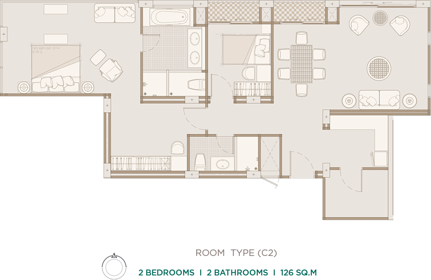 Room Review 2 Bedrooms 126 SQ.M