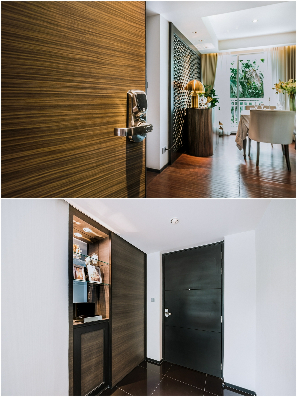 รักษาความเป็นส่วนตัวด้วยการเข้า-ออกระบบ Digital Door Lock ได้มาตรฐานจาก Yale ที่สามารถทำงานได้สองฟังก์ชัน ทั้ง Keycard Access และ Password โดยตัวประตูจะเป็นบานไม้สวยหรู ด้านในมีช่องตาแมวให้ส่องดู เพื่อความมั่นใจก่อนเปิดต้อนรับแขกที่มาเยือน