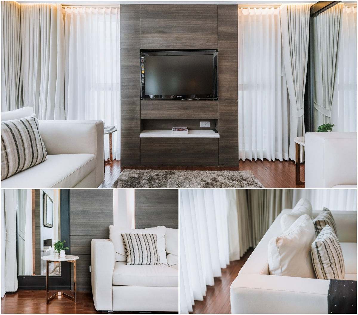 เปิดประตูเข้าหาความสบายทั้งกายและใจ ที่ไม่ว่าใครก็อยากมี ด้วยห้องพักอาศัยสไตล์ Homey ที่ตกแต่งโมเดิร์นหรูหราไม่ต่างจากโรงแรม โดยห้อง Type นี้จะตกแต่งแบบ Fully Fitted เช่นเดียวกับห้อง 1 Bedroom บริเวณพื้นปู Engineering wood งดงามเทียบเท่าไม้จริง ผนังฉาบเรียบทาสีขาว พร้อมติดตั้งเครื่องปรับอากาศแบบฝังฝ้าให้ 3 ตัว