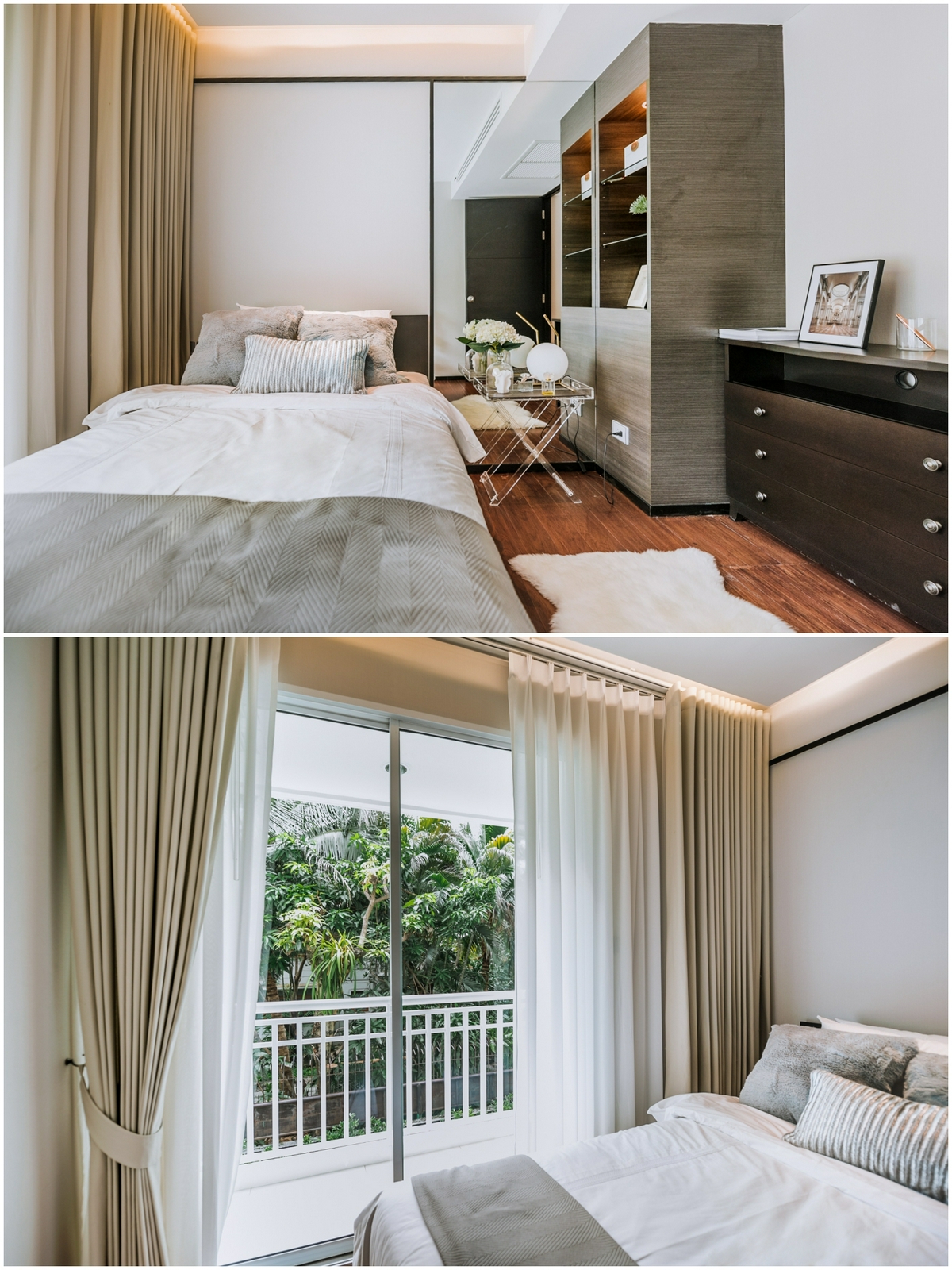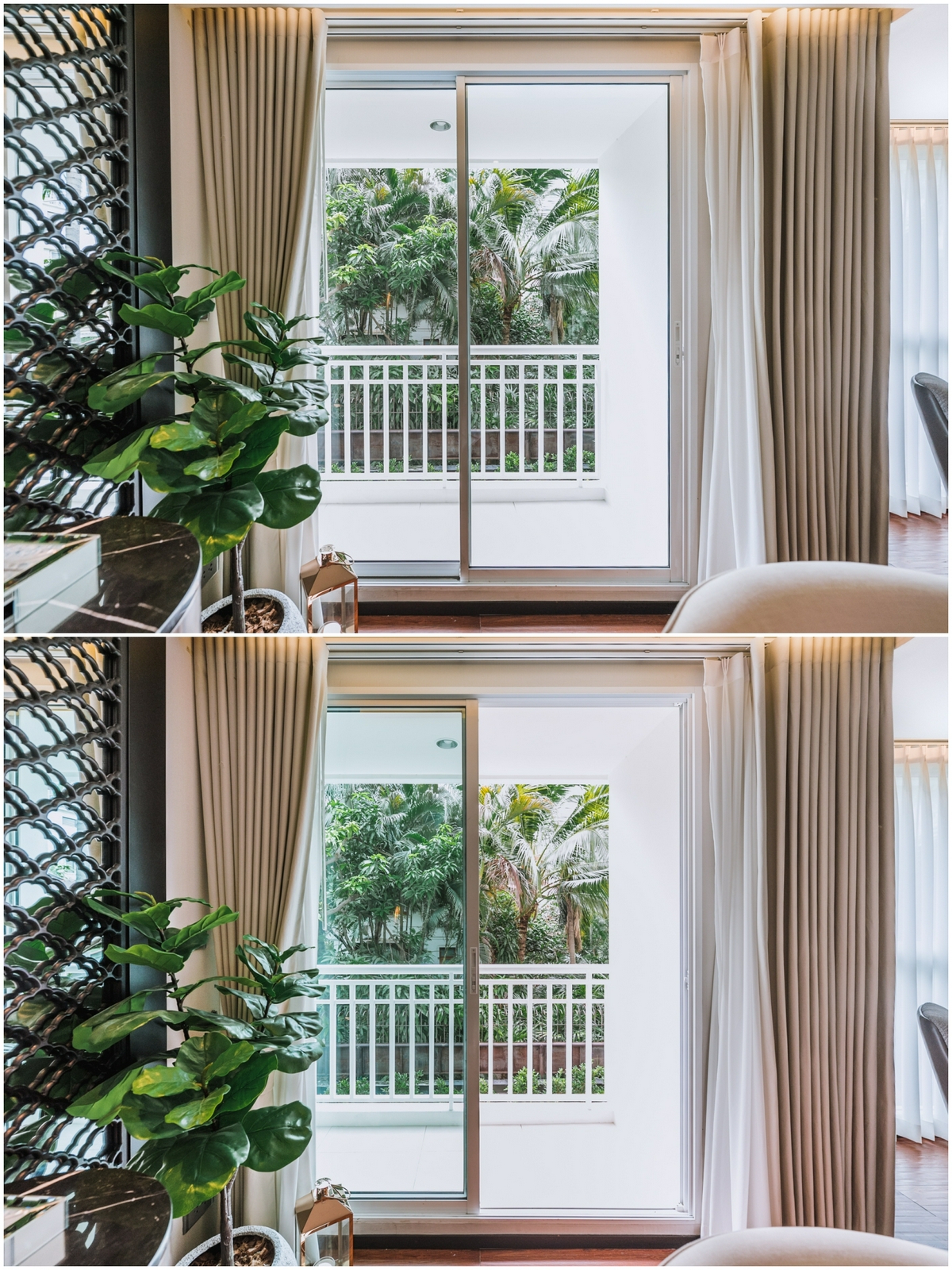 - บานกระจกตัดแสง ช่วยป้องกันความร้อนได้เป็นอย่างดี มีรางแขวนผ้าม่านแบบ 2 ราง ให้เลือกแขวนได้ทั้งม่านโปร่ง และม่านทึบ
