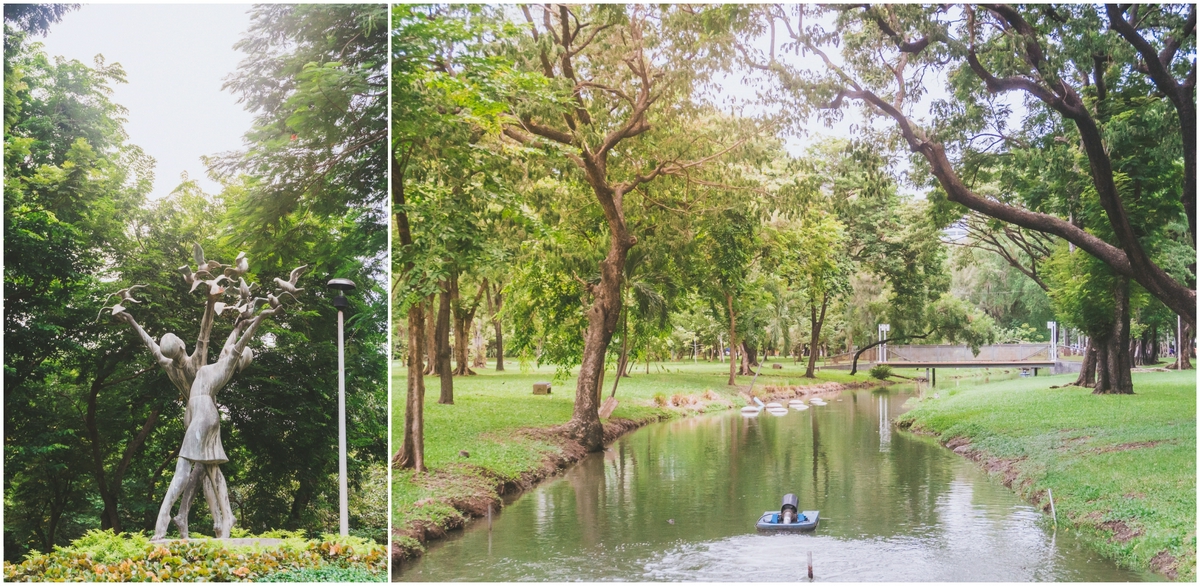 ภายในเต็มไปด้วยต้นไม้สูง และสนามหญ้าเขียวขจี พร้อมมีประติมากรรมศิลปะตกแต่งอยู่ตามจุดต่าง ๆ ให้เราเพลิดเพลินกับบรรยากาศร่มรื่นนี้ได้ทุกวัน ซ้ำยังมีกิจกรรมอีเวนต์คอยหมุนเวียนให้เดินเล่นกันตลอดทั้งปีอีกด้วย