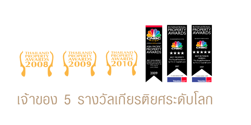 เรียกได้ว่า The Royal Residence คือโครงการที่พักอาศัยเหนือระดับที่ได้รับการยอมรับและชื่นชมในคุณภาพ และการออกแบบจากเวทีระดับนานาชาติ ที่จะเป็นเครื่องสะท้อนถึงรสนิยมอันทรงคุณค่าของคุณ การันตีด้วยเจ้าของ 5 รางวัลเกียรติยศระดับโลก