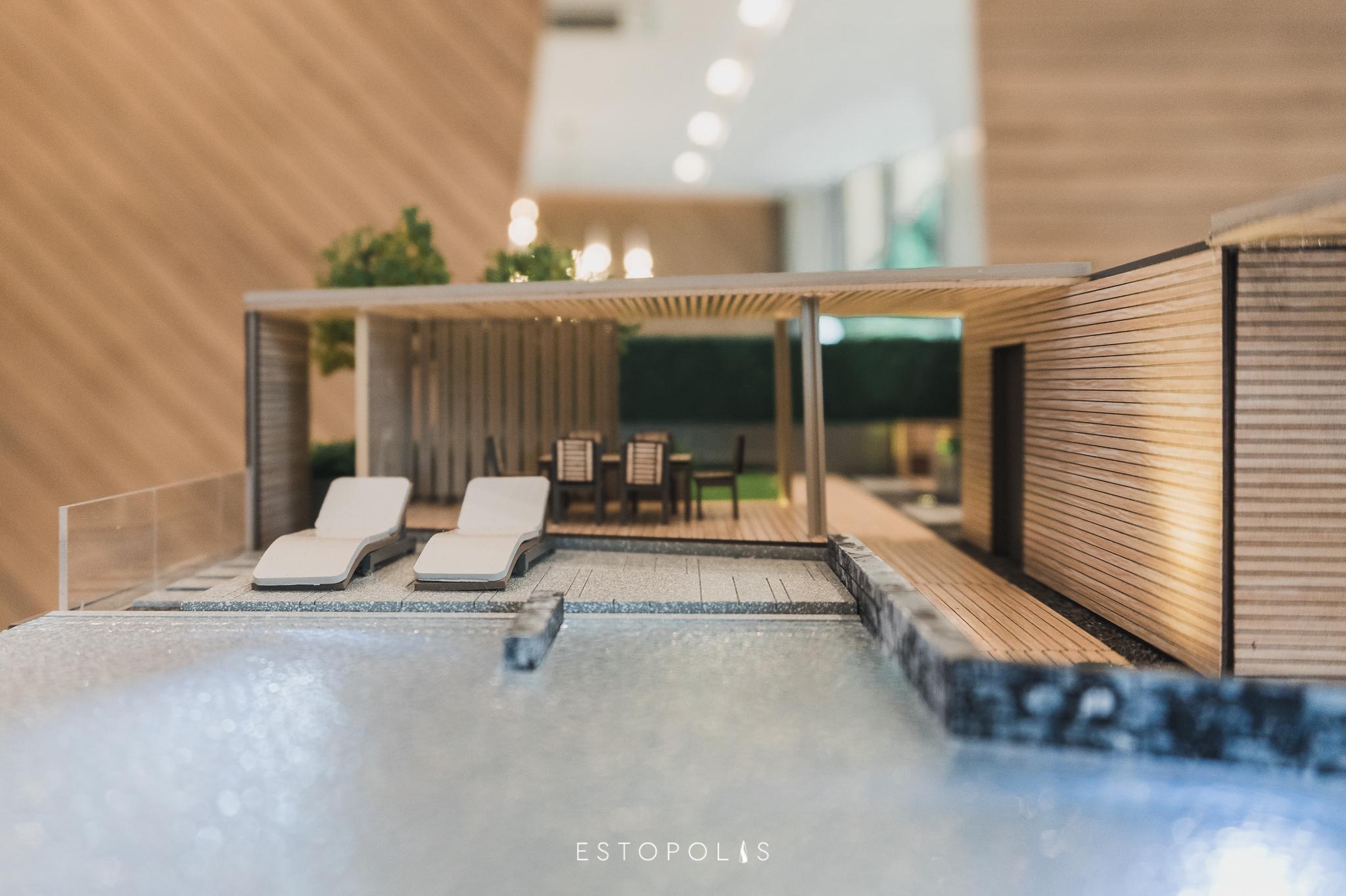 และเมื่อขยับขึ้นไปที่ชั้นดาดฟ้าก็เป็นส่วนของ Facilities เช่นกัน ประกอบด้วย 'สวนหย่อม' ที่มีเก้าอี้ให้เราได้นั่งพักผ่อนท่ามกลางบรรยากาศสีเขียว และความสดชื่นของสระว่ายน้ำ