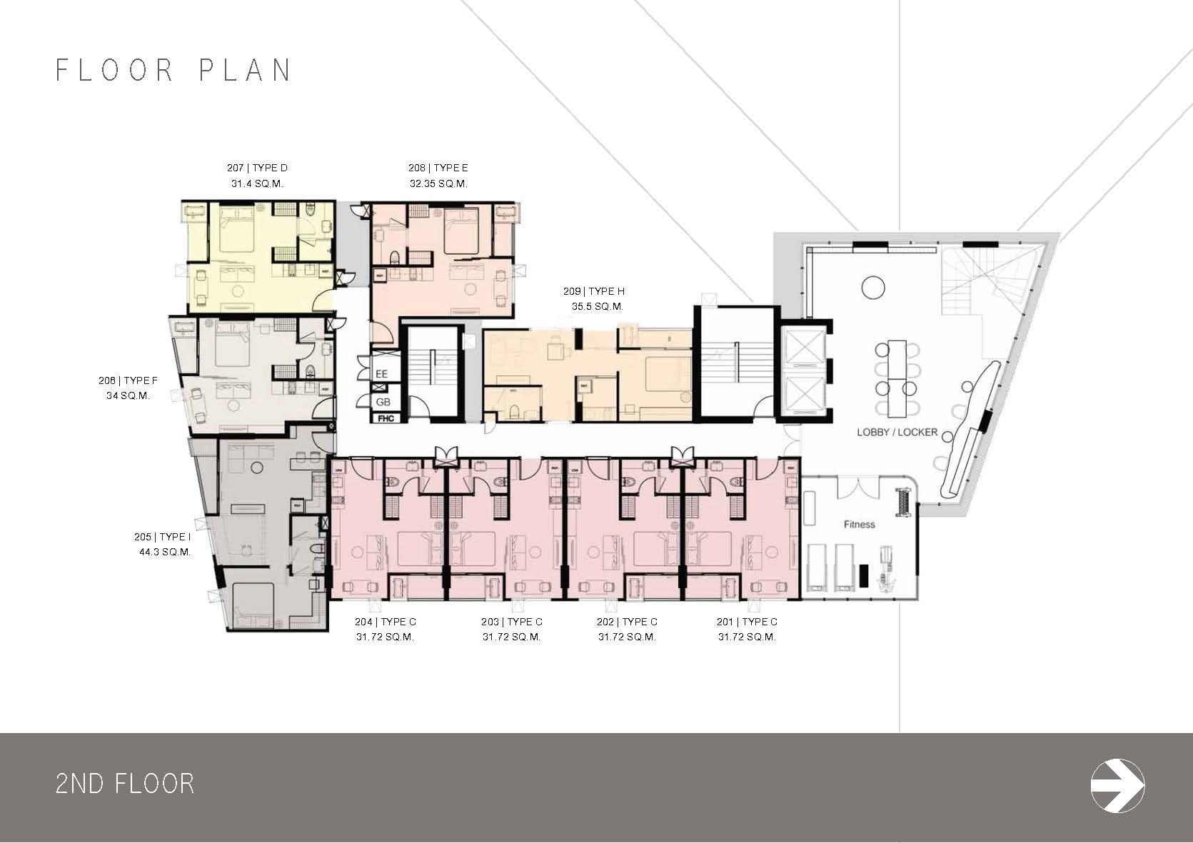บริเวณชั้น 2 จะเป็นโซนที่พักอาศัย คู่กับพื้นที่ของส่วนกลาง ที่ถูกใช้เป็น Lobby, Mail box, ฟิตเนส และโถงลิฟต์โดยสารแบบล็อกชั้นที่มีให้บริการ 2 ตัว ซึ่งช่วยเพิ่มความปลอดภัยและความเป็นส่วนตัวให้ผู้พักอาศัยได้เป็นอย่างดี เหมาะสำหรับคนรุ่นใหม่ที่มีไลฟ์สไตล์ไม่หยุดนิ่ง สามารถเข้ามาใช้บริการ Facilities ได้สะดวกยิ่งขึ้น