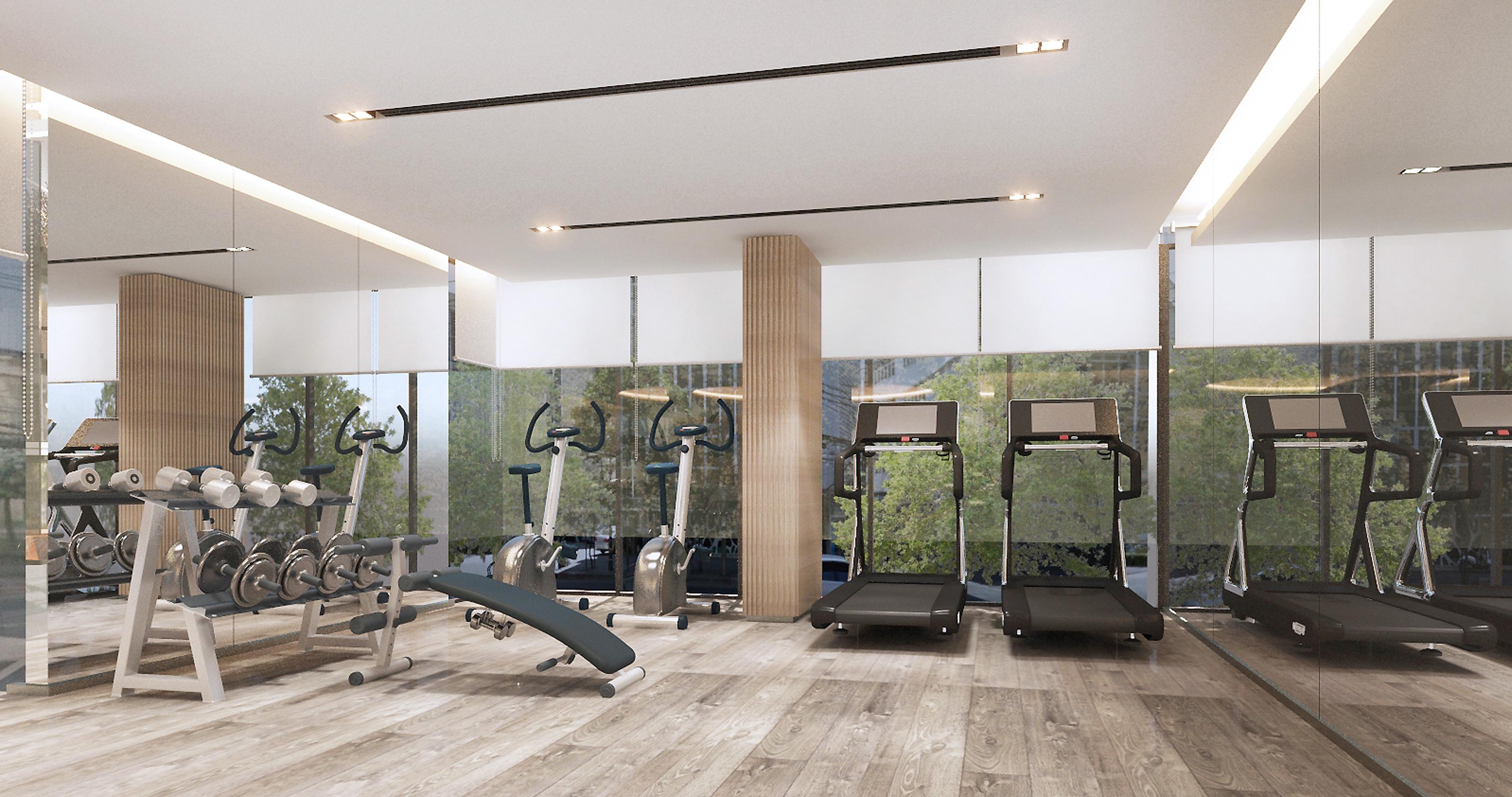 อีกฝั่งของพื้นที่ส่วนกลางในชั้น 2 จะเป็นฟิตเนสที่มาพร้อมกับเครื่องออกกำลังกายครบครัน