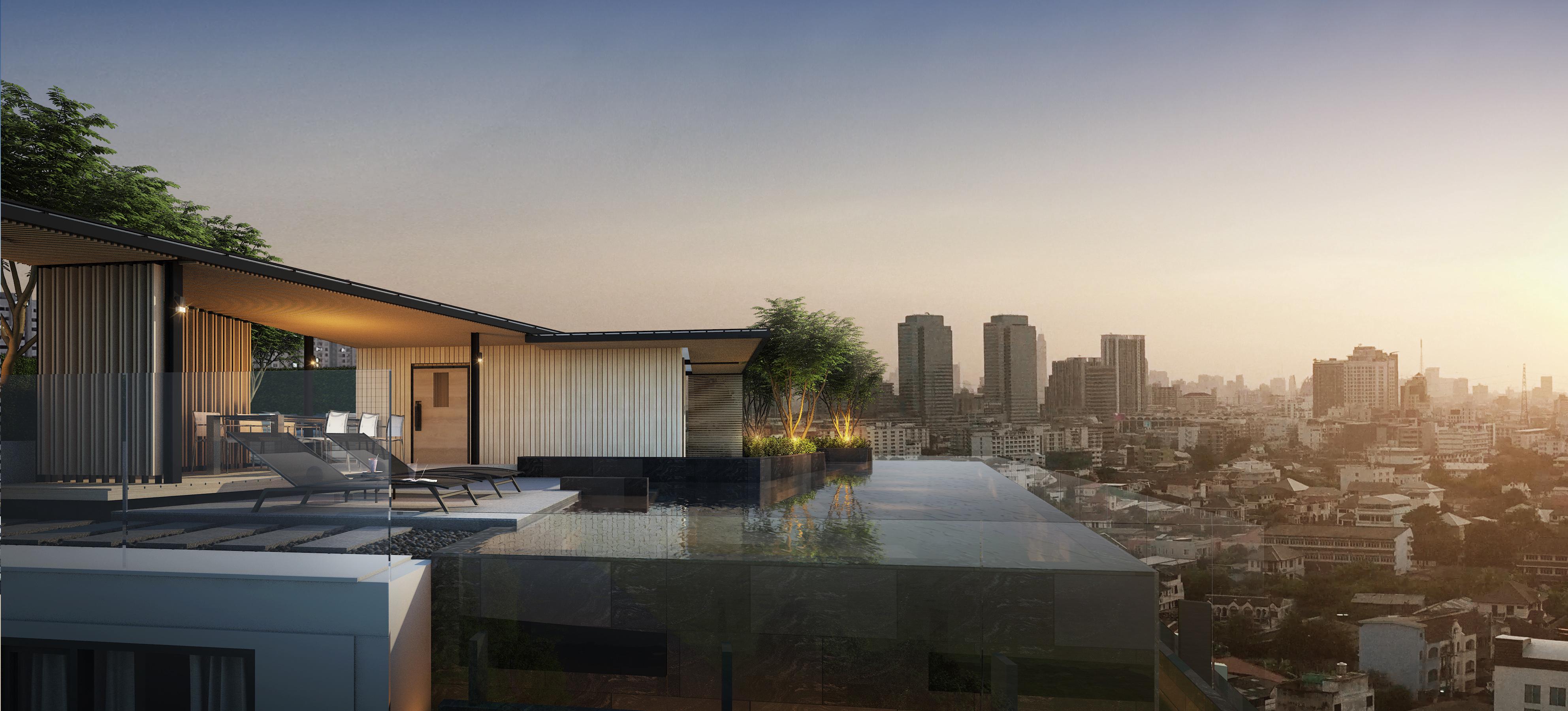 - สระว่ายน้ำชั้นดาดฟ้ามองเห็นทัศนียภาพของกรุงเทพสุดสายตา