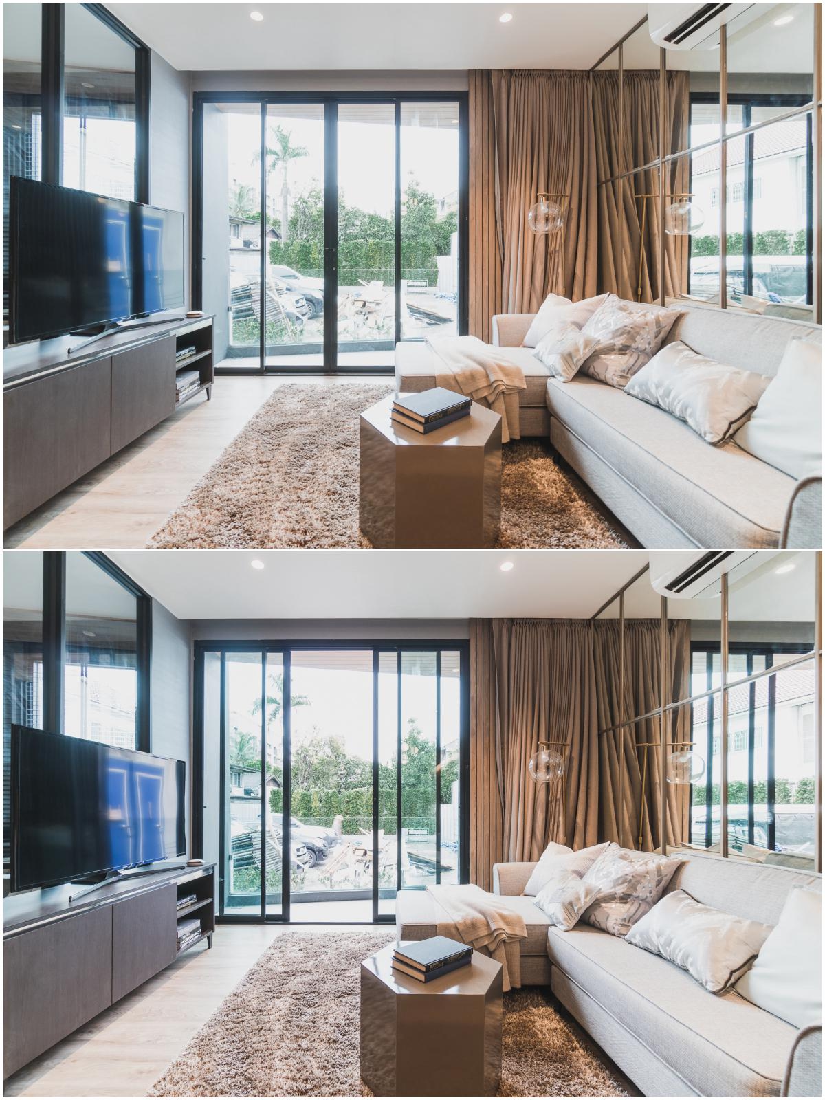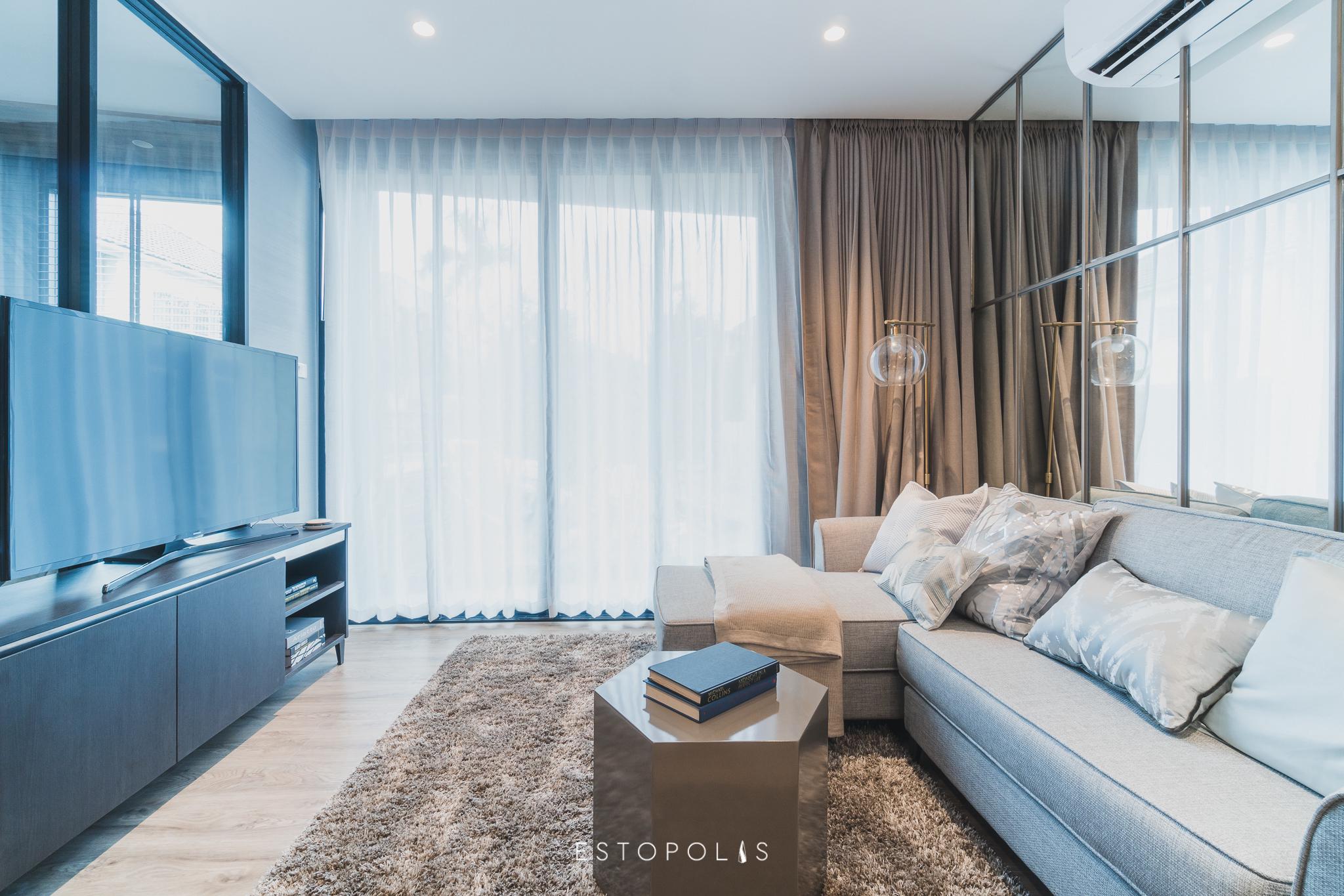 และป้องกันความร้อนเข้าสู่ห้องมากเกินไป ทางโครงการจึงเลือกใช้กระจกตัดแสงสีเขียวมาช่วยเพิ่มความเย็นสบายให้กับการอยู่อาศัย หรือใครจะแขวนผ้าม่านแบบ 2 ชั้นร่วมด้วยก็สามารถทำได้เช่นกัน
