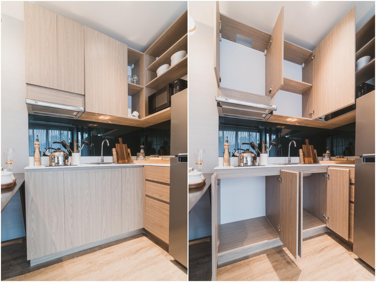 พร้อมให้เราจัดวางของใช้และวัตถุดิบต่างๆ ได้ง่ายขึ้นด้วยตู้เก็บของบิลท์อิน และเคาน์เตอร์ครัวด้านล่างที่แบ่งฟังก์ชันการใช้งานให้เรียบร้อยในตัว