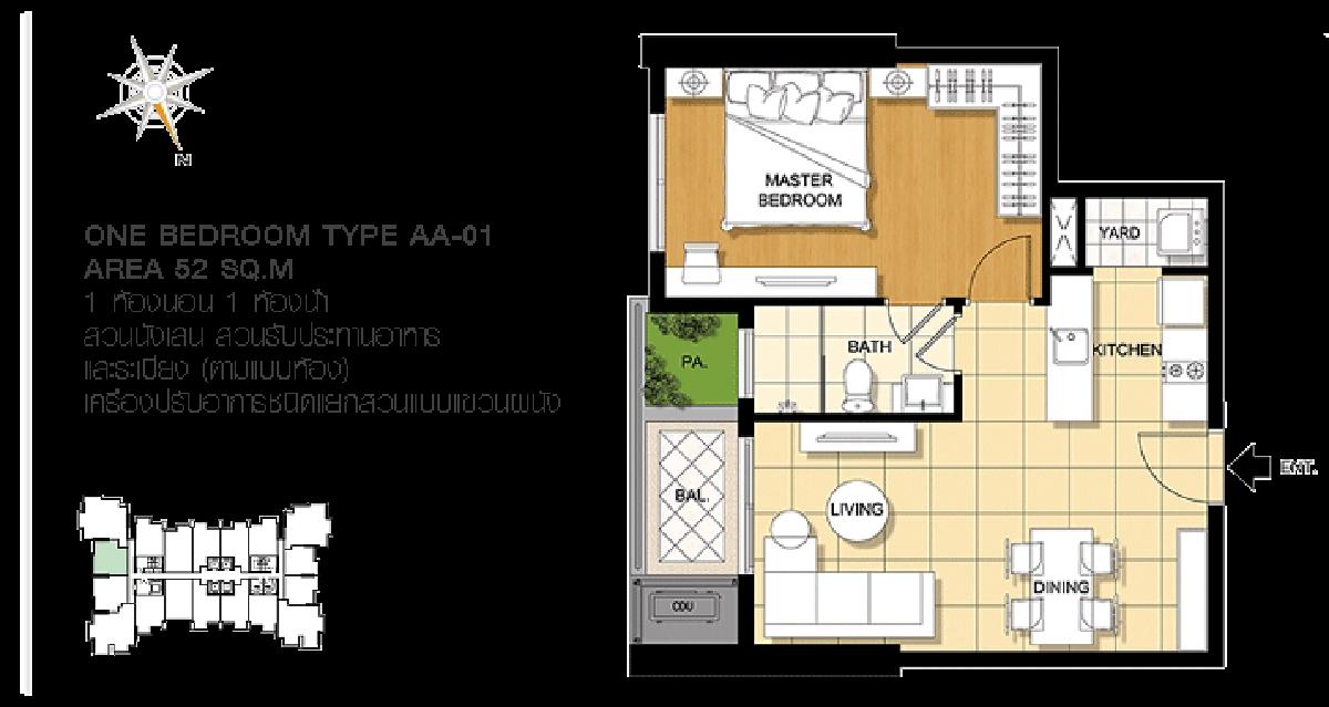 1 ห้องนอน 1 ห้องน้ำ 40 – 52 ตร.ม.