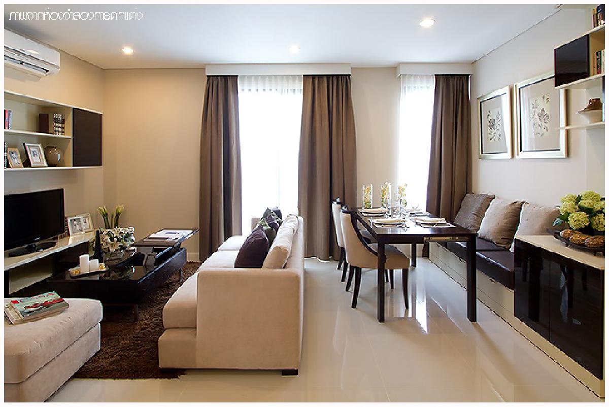 ภาพจำลองบรรยากาศห้องนั่งเล่นในห้องตัวอย่างคอนโด Villa Asoke (วิลล่า อโศก)