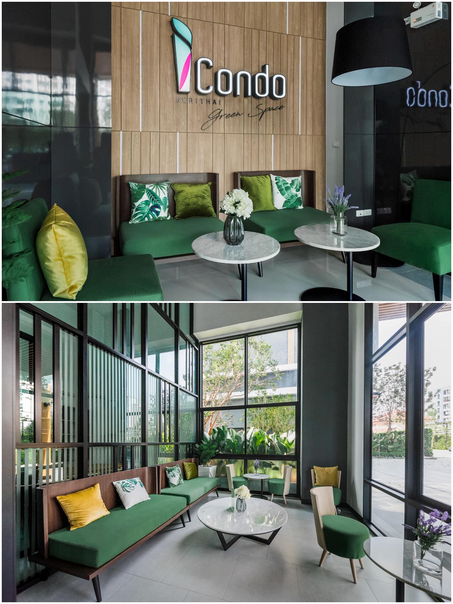 ที่บริเวณชั้น 1 ของโครงการ iCondo Green Space ทั้ง 2 ตึก จะเป็นโถง Lobby สีเขียวสบายตา ให้ลูกบ้านสามารถลงมานั่งเล่น พบปะผู้คน หรือรอรถที่บริเวณนี้ได้ นอกจากนี้ใครที่อยากเปลี่ยนบรรยากาศลงมานั่งทำงาน ที่บริเวณนี้ก็มีปลั๊กไฟไว้รองรับสำหรับการชาร์จโน้ตบุ๊กให้ด้วย