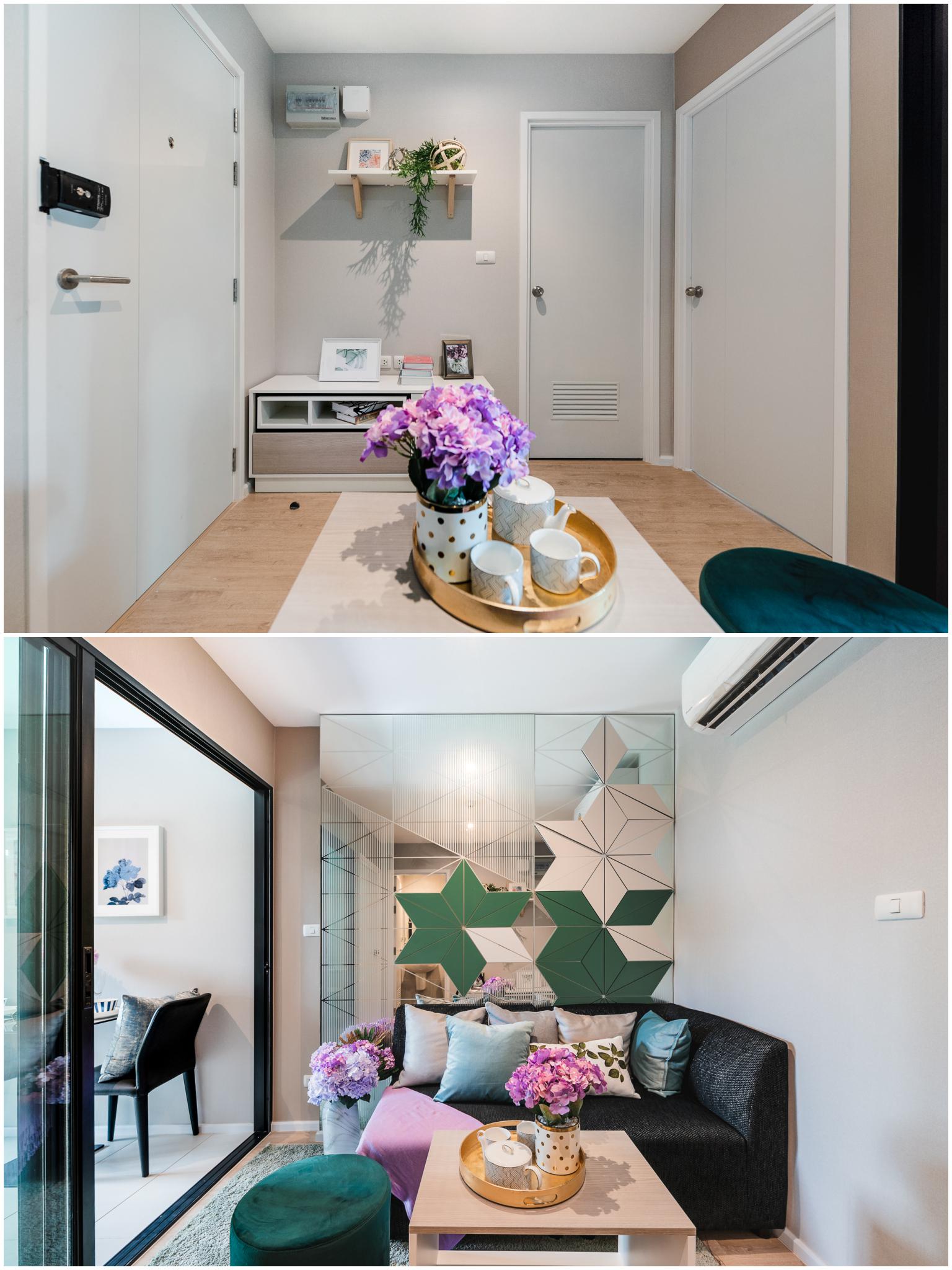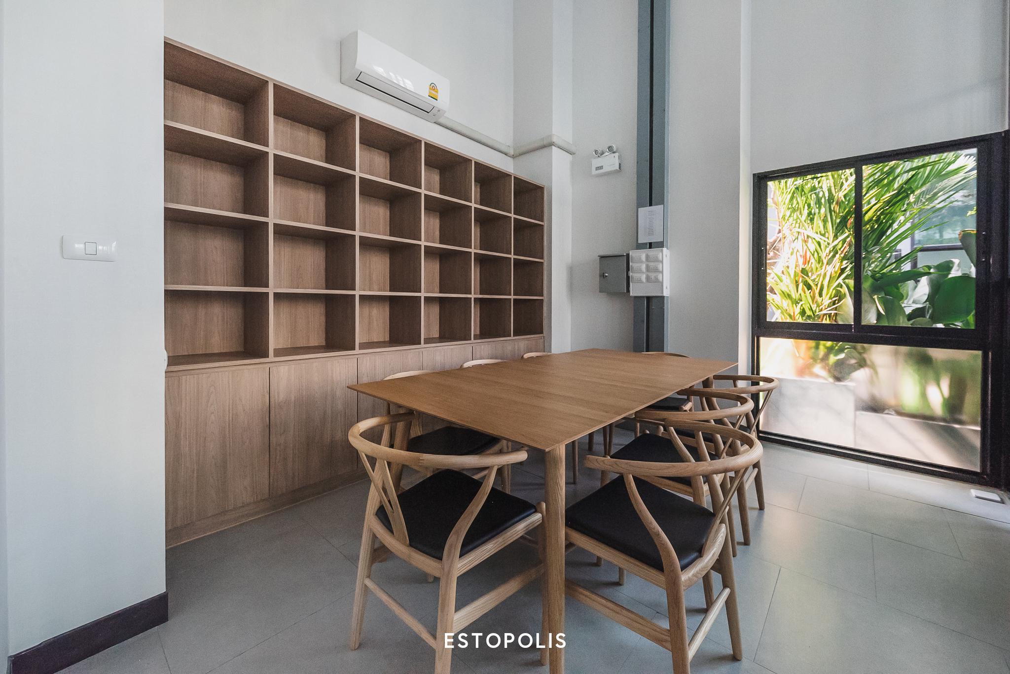 ส่วนที่ตึก B จะพิเศษขึ้นมาอีกหน่อย เพราะนอกจาก Lobby แล้ว ถัดไปจะเป็นห้อง Co-Working Space ที่ลูกบ้านสามารถใช้เป็นที่นั่งประชุมงาน, พูดคุยธุรกิจ หรือนัดพบแขกเพื่อหาพื้นที่สงบส่วนตัวในการพูดคุย ซึ่งห้อง Co-Working Space นี้ ลูกบ้านที่อยู่ตึก A ก็สามารถเข้ามาใช้งานได้เช่นเดียวกัน
