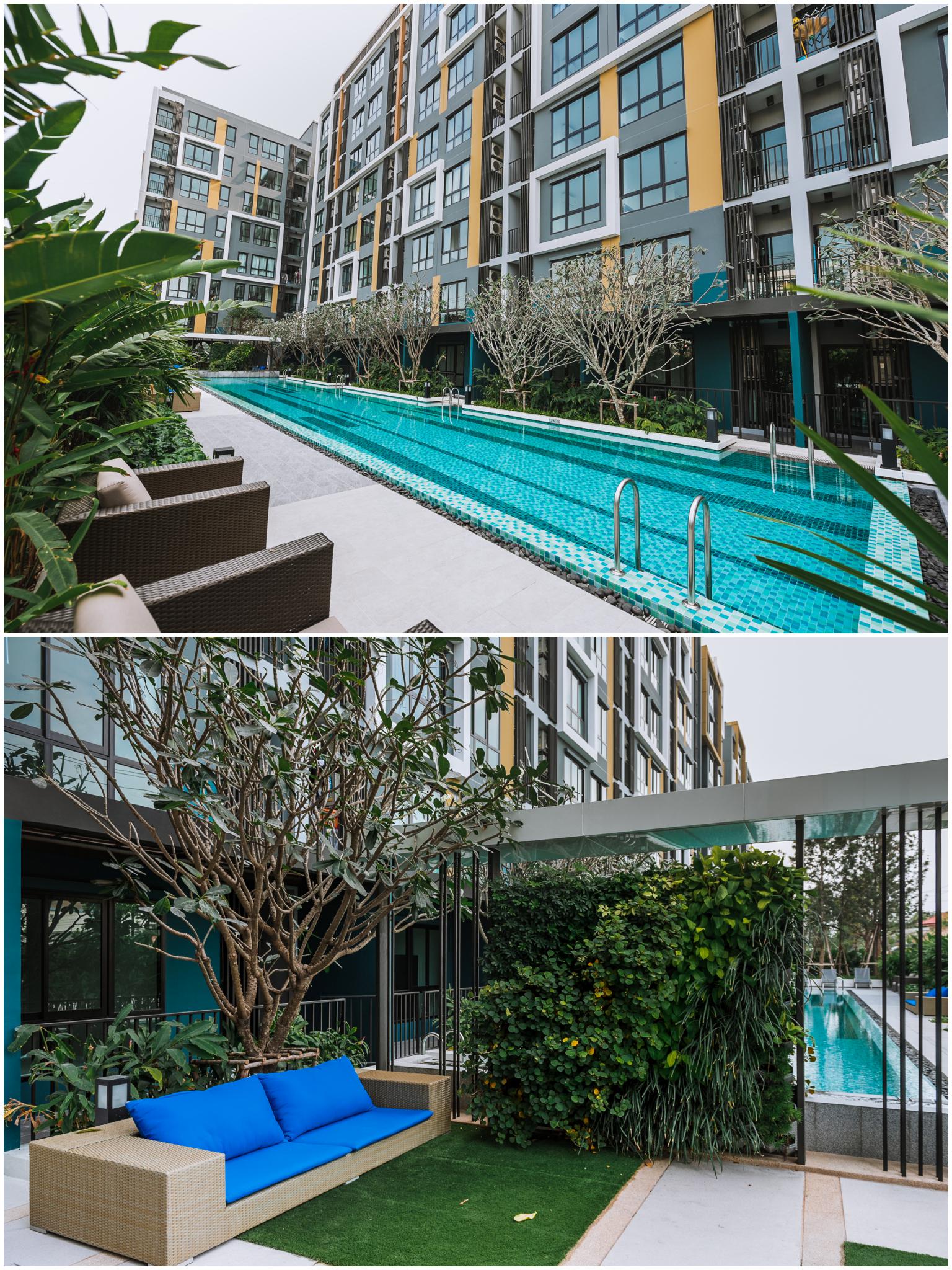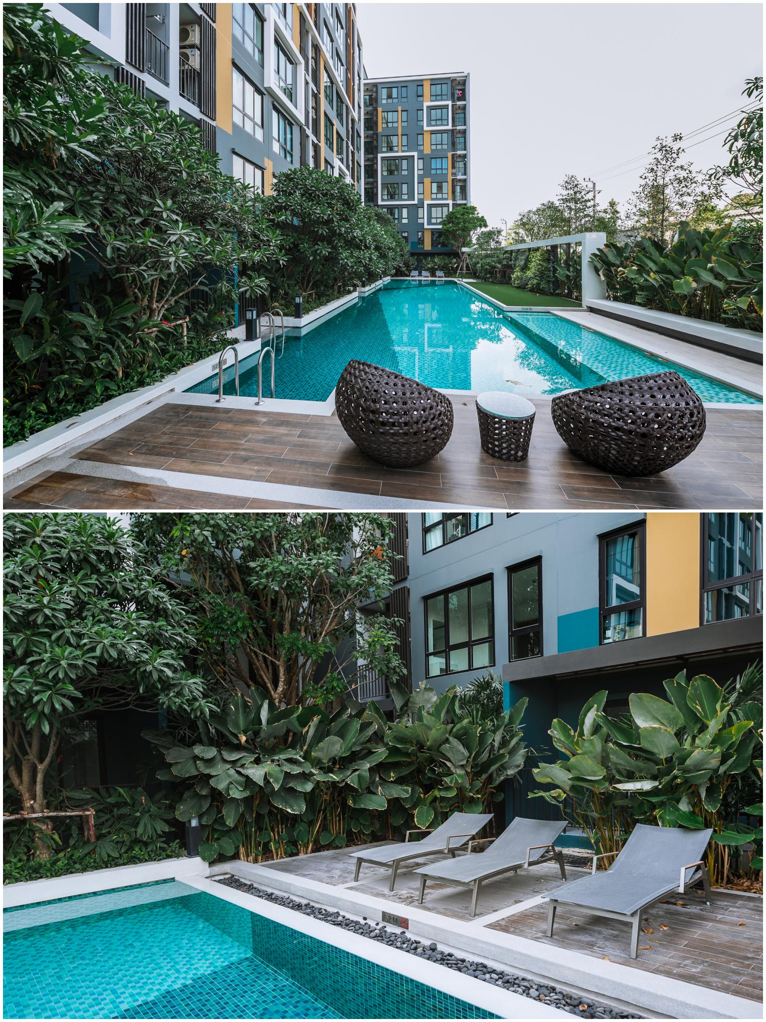 นอกจากนี้รอบๆ บริเวณสระว่ายน้ำของทั้ง 2 ตึก ยังมีโซฟาให้นั่งเล่นอยู่รอบๆ เหมาะจะลงมาเปลี่ยนบรรยากาศนั่งเล่นชมวิวสระกับธรรมชาติสีเขียวให้ความสบายใจไปอีกแบบ