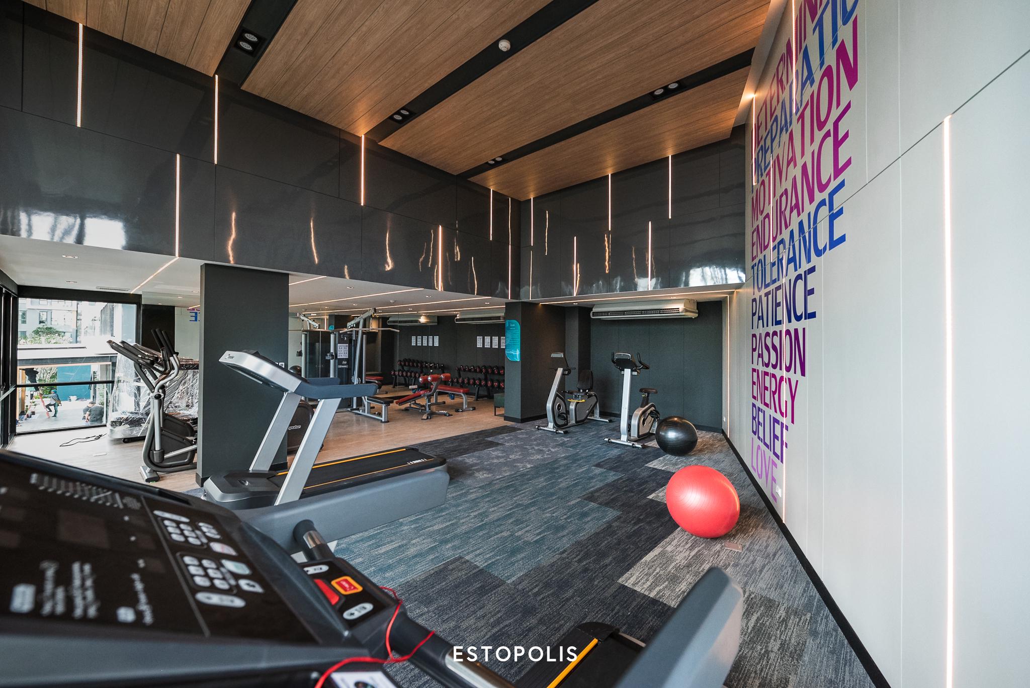 โซนฟิตเนสตั้งอยู่บริเวณเหนือห้องน้ำข้างสระของตึก A ซึ่งต้องบอกเลยว่า ทางโครงการได้จัดเครื่องออกกำลังกายมาให้แบบเต็มที่ ทั้งลูกบอลโยคะ, ดัมเบล, เครื่องปั่นจักรยาน, เครื่องเดินวงรี, ลู่วิ่งไฟฟ้า, อุปกรณ์สร้างกล้ามเนื้อ และที่ซิตอัพ นับว่าตอบโจทย์กันตั้งแต่การออกกำลังกายเบาๆ ไปจนถึงแบบหนักเน้นสร้างกล้ามเนื้อเลยทีเดียว โดยลูกบ้านทั้งตึก A และตึก B ที่ใส่ใจสุขภาพ สามารถเข้ามาใช้บริการฟิตเนสแห่งนี้ร่วมกันได้