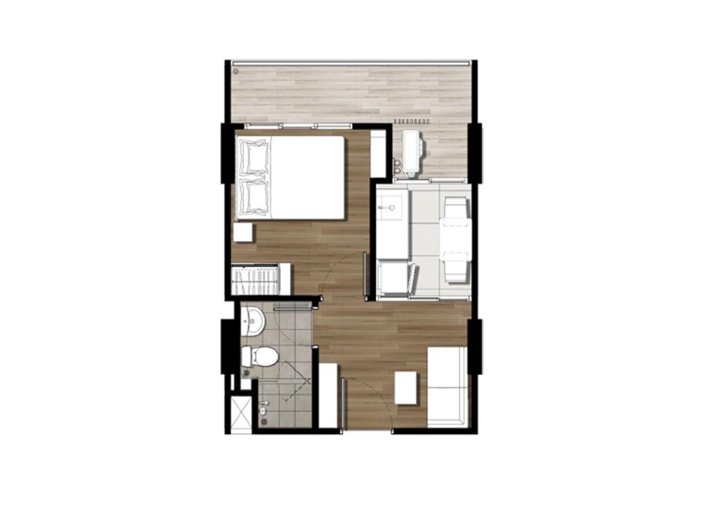 ห้องขนาด 28 ตารางเมตร 1 ห้องนอน