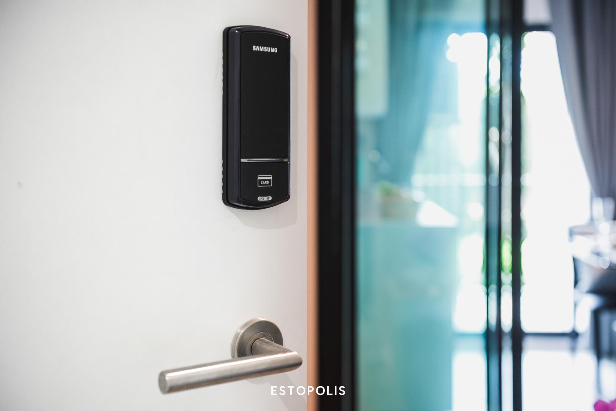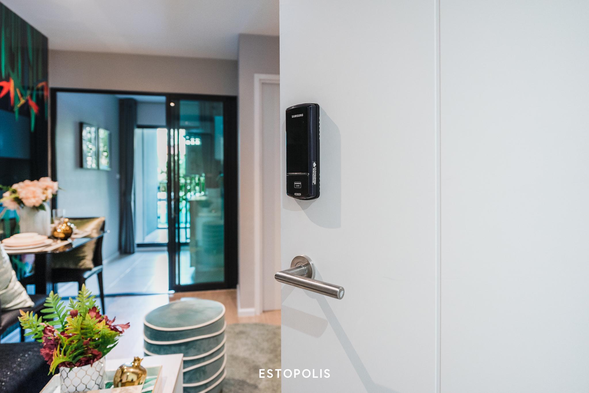 SMART Digital Door Lock ที่ทางโครงการเลือกใช้มาจากแบรนด์ Samsung รุ่น SHS-1321 ที่สามารถปลดล็อกได้ทั้งระบบคีย์การ์ดและรหัสพินแบบทัชสกรีน ทั้งยังมีระบบป้องการการโจรกรรมถึง 2 รูปแบบ คือ การแจ้งเตือนเมื่อถูกงัดแงะ และโหมด Double Door Log ป้องกันบุคคลภายนอกที่อาจทราบรหัสผ่านของเรา ปลดล็อกเข้าไปยังห้องได้ อีกทั้งยังมีระบบตรวจจับความร้อนเมื่อเกิดเหตุอัคคีภัย และระบบป้องกันการคลายล็อกเมื่อเกิดกระแสไฟฟ้าช็อตอีกด้วย คุณจึงอุ่นใจได้เสมอ ราวกับมีซีเคียวริตีการ์ดคอยดูแลความปลอดภัยให้กับห้องของเราอยู่ตลอดเวลา