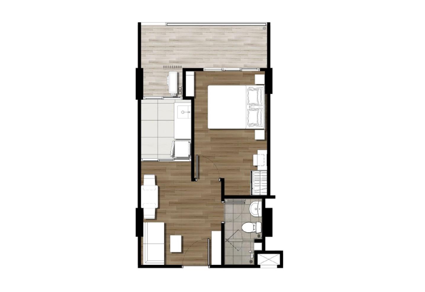 ห้องขนาด 37 ตารางเมตร 1 ห้องนอน