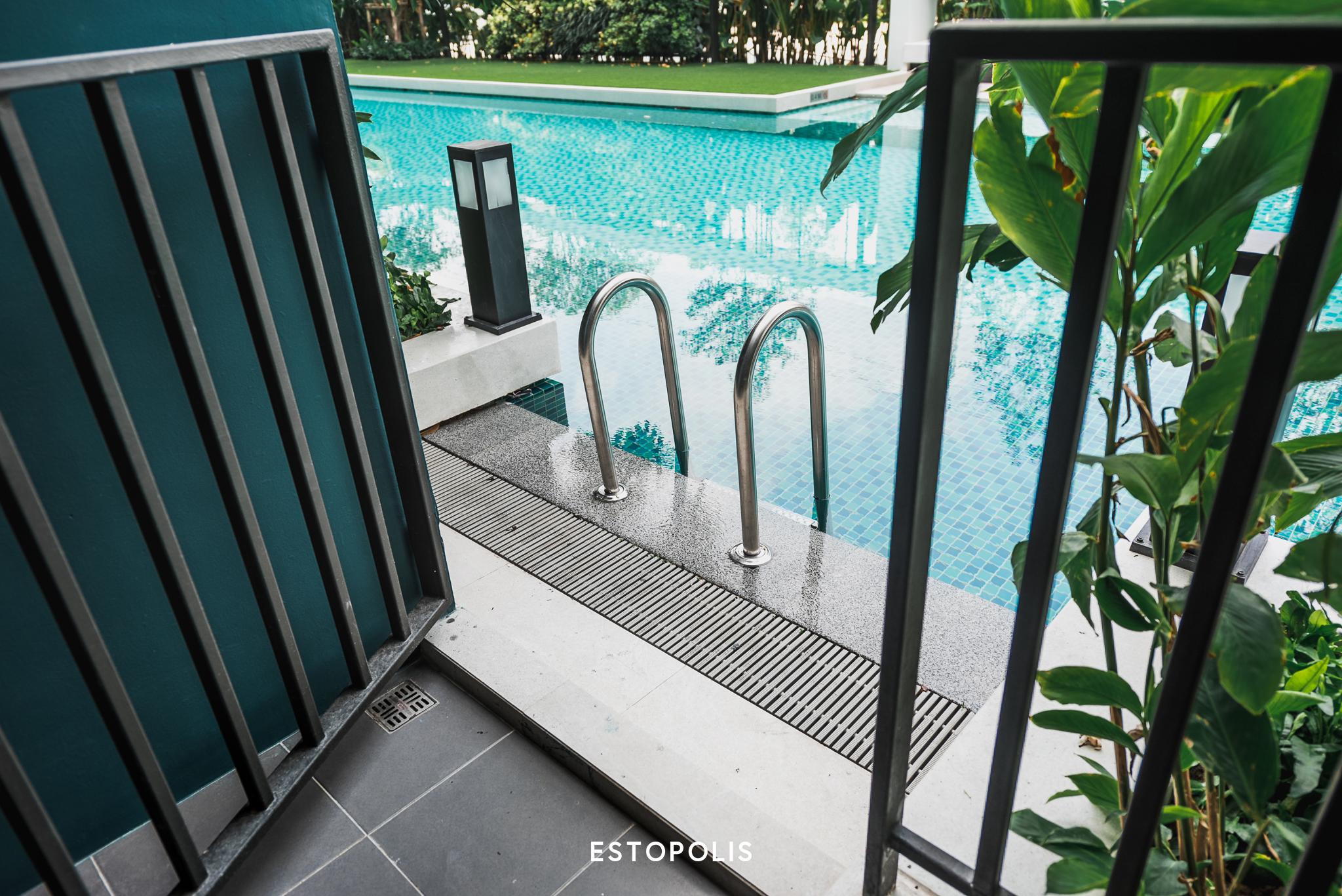 นอกจากนี้ ระเบียงยังสามารถเชื่อมต่อกับสระว่ายน้ำของโครงการได้ทันที ให้คุณสามารถใช้สระว่ายน้ำได้อย่างเป็นส่วนตัว สามารถอาบน้ำล้างตัวที่ห้องพักได้โดยไม่จำเป็นต้องออกไปใช้พื้นที่ส่วนกลาง และเรายังสามารถเข้าถึงสระว่ายน้ำได้ทุกเมื่อ เหมาะอย่างยิ่งสำหรับคนที่รักการออกกำลังกาย และชื่นชอบการพักผ่อนเป็นชีวิตจิตใจ
