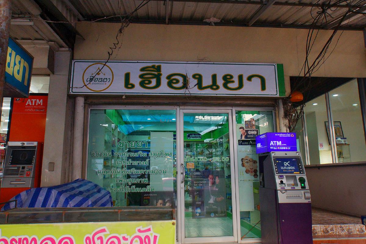 อาคารพาณิชย์บริเวณสะพานลอยก็มีร้านค้า ร้านขายยา และตู้ ATM หลายธนาคาร